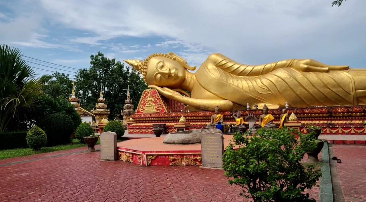 탓 루앙을 중심으로 동서남북에 사원이 있었는데 지금은 남 사원과 북 사원이 남아있고 나머지는 파괴되었다고 한다. 개방되고 있는 남쪽 사원을 들렀다. 사원 벽에는 사원 건립에 도움 준 사람들의 얼굴과 금액이 새겨져 있었다. 안으로 들어가니 여러 불상이 우리를 반긴다. 불상들의 모습들이 한결같이 인도 힌두교의 세 신을 닮았다. 가이드에 물어보니 힌두교의 영향을 받은 불상이라 했다. 루앙프라방에서 봤떤 라오스 최고의 승려의 금빛 좌상도 놓여 있었고 안쪽에 거대한 금빛 와불이 우리의 시선을 끌었다. 사원 한쪽 끝에 구부정하게 앉아 담배를 피고 있는 승려 모습을 보며 이곳 스님들의 신심을 의심하는 눈총을 보내기도 했다.