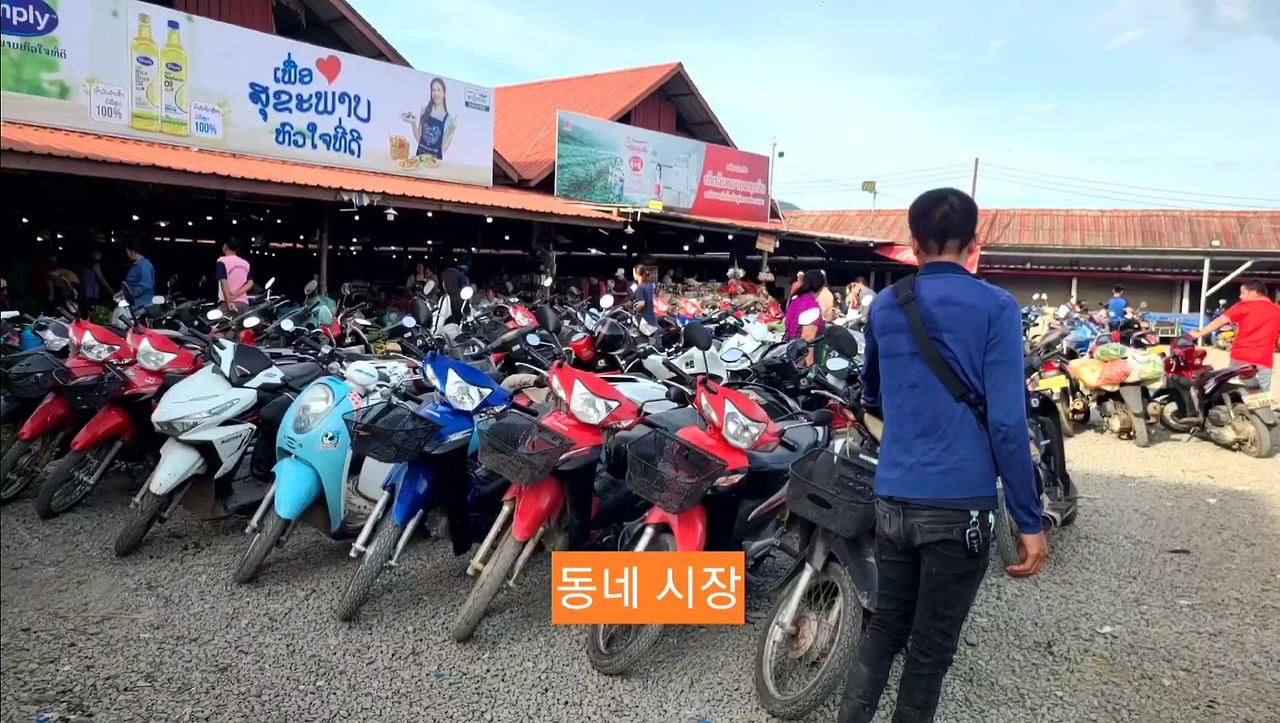 그리고 출발 시간에 여유가 있어 동네 한 바퀴 둘러 봤다. 길 가에 이름 모를 예쁜 꽃들이 피어 있어 여러 번 카메라에 담는 동안 동네 시장에 다다랐다. 시장 입구에 주차된 오토바이 규모라 봐서 아주 큰 시장으로 느껴졌다. 시장 속으로 들어 가니 아침 시장에서 봤던 싱싱한 과일, 야채들과 갓 잡은 물고기 수많은 난전들이 빼곡히 들어서 있다. 특히 정육점 규모는 아침 시장에서 봤던 규모의 5~6배는 되었는데 주변에 큰 개들이 돌아 다니며 버려지는 고기 덩어리를 노리는 모습이 인상적이었다.