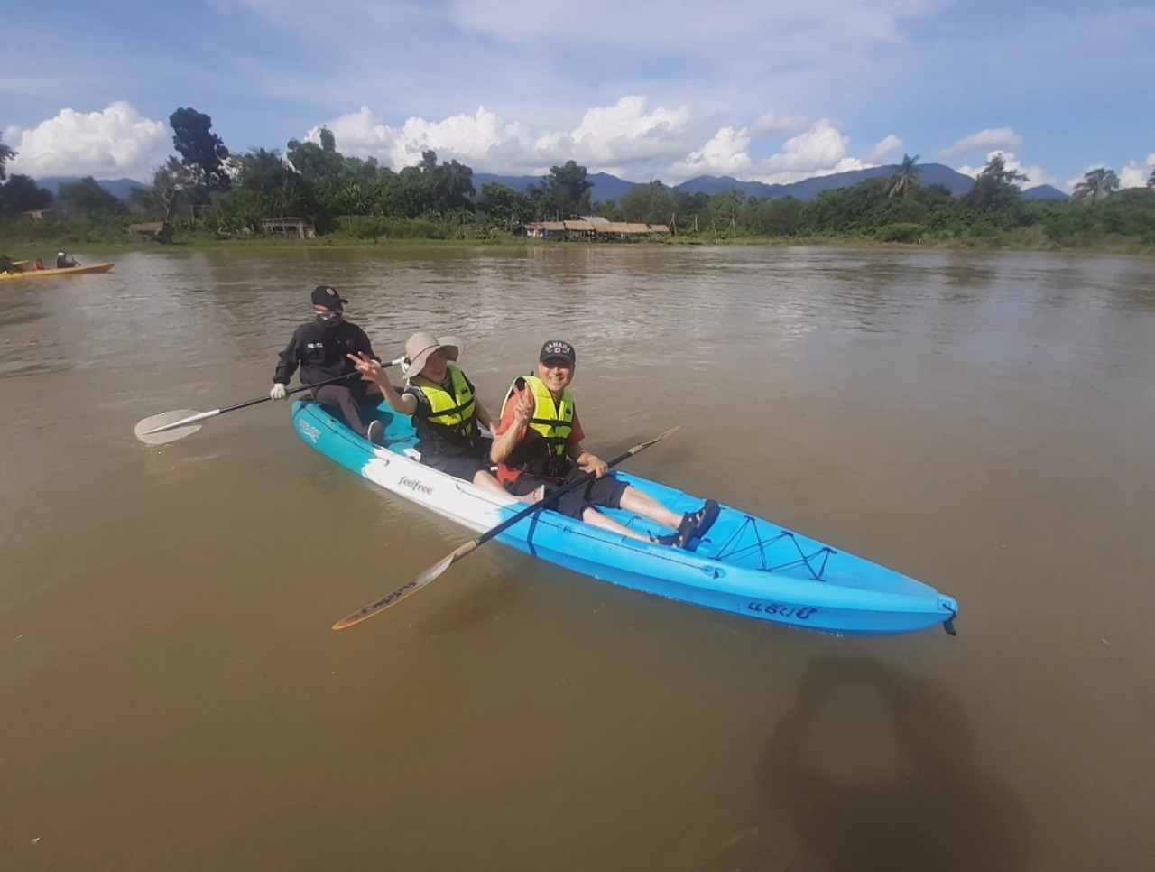 이어 카약 경험이다. 보트 젓는 법도 모르는데 카약이라니? 기우였다. 두 사람이 탄 카약 뒤편에 이곳 현지인이 보트를 저어 주기 때문에 걱정할 필요가 없고 우리가 잠시 보트 젓는 방법을 배운 것은 그냥 멋진 모양을 연출하기 위한 것이었고 상대편 카약에 물장난을 치기 위한 것이었다. 카약을 타고 이동하는 동안 강에서 튜빙을 즐기는 외국인들과 물장난도 하고 함께 여행을 하는 여행 동반자들과도 물을 뿌리며 즐거운 시간을 가졌다.