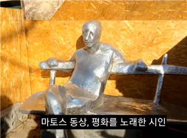 이곳에서 만난 또 한 인물, 마토스. 이곳 최고의 사립고등학교 벽 옆에 있었는데 공사 중이서인지 누런 합판으로 둘러쌓여 있었따. 마토스는 은색 동상으로 은색 벤치 위에 다리를 꼬고 앉아 그가 사랑했던 자그레브 시내를 바라보고 있었다. 마토스는 평화로운 시로 당시 억압받던 크로아티아에 사랑을 노래했다. 마토스는 당시 오스트리아-헝가리 제국의 지배 하에서 징집되었다 탈영하여 13년 만에야 사면받아 꿈에 그리던 고향, 자그레브에 돌아왔지만 얼마 못살고 병으로 죽었다고 한다.