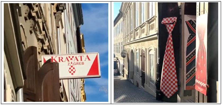 이동 중에 어떤 집 앞에 사람들이 모여 사진을 찍고 있었는데 넥타이 가게였다. 넥타이의 원조가 크로아티아인데 크로아티아에 있는 유명한 수제 넥타이 가게 중 한 집이라고 한다. 17세기 유럽에서는 영국과 프랑스 간의 30년 종교전쟁이 있었는데, 당시 크로아티아는 프랑스 속국이었고 프랑스가 크로아티아의 병사를 출정할 때 무사히 돌아오라는 의미로 목에 빨간 스카프를 감아 주었는데, 당시 프랑스 황제였던 루이 14세가 관심을 보이며 그것이 뭐냐고 묻자 질문을 뜻을 이해하지 못한 병사가 크로아티아 병사란 의미의 크라바트라고 했다고 한다. 그 이후 프랑스에서는 이와 같은 형태의 넥타이 제품을 생산하며 그것을 크라바트라 불렀다고 한다. 그렇게 해서 넥타이가 통용되기 시작했으니 크로아티아가 넥타이의 원조이고 우리들이 지나면서 본 가게 이름도 크라바트란 상호를 가지고 있었다.