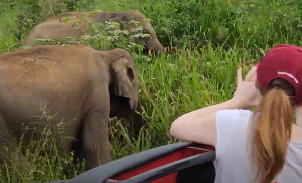 스리랑카에서는 사파리 체험이 가능한 곳이다. 스리랑카에는 사파리 체험을 할 수 있는 장소가 몇 군데 있었는데 우리가 묶는 호텔 근처에 민네리아 국립공원도 사파리 체험을 할 수 있는 곳이라 일행이 함께 경험할 수 있었다. 짚차 당 4명씩 탑승하여 민네리아 국립공원을 약 2시간 돌아보며 야생 동물을 보는 프로그램인데 기대한만큼 다양한 동물을 체험할 수는 없었다. 다만, 야생 코끼리 떼는 여러 번 짚차가 근접한 상태에서 목격하며 즐길 수 있었다. 그 외 물소 떼, 공작은 볼 수 있었지만 그리 많지 않았고 가끔 눈에 띈다는 표범이나 사슴 무리들은 볼 수 없었다. 그럼에도 시원한 밀림 공기를 가로 지으며 개방된 차 위에 서서 대자연을 만끽할 수 있는 시간이 되었다.