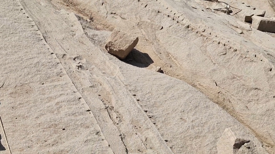 미완성 오벨리스크가 누워있는 지역은 넓은 채석장이었는데 주변 전체가 화강암으로 이루어진 화강암 바위로 이루어진 언덕이었다. 이동 중에 가이드는 일정한 간격으로 움푹 패인 곳을 가리키며 바위를 자른 흔적이라고 했다. 일정 간격으로 홈을 만든 후에 나무를 박아 넣고 그 나무에 물을 부어 팽창시켜 바위를 자르는 식이라는 것이다(대충 그럴듯했지만 그렇게 해서 어찌 칼로 자른 듯이 날카롭게 잘랐다는건지 도무지 이해되지 않는다). 다음에는 아이스크림 스쿠퍼로 떠내듯 움푹 움푹 패인 곳을 가리키며 저곳이 바위를 떠낸 흔적이라 했는데, 그것 역시 어떻게 해서 바위를 떼 냈는지는 모를 일이다. 그리고 언덕 아래로 42미터의 미완성 오벨리스크 바위가 있는 곳으로 갔다. 작업 중 중간에 금이 가서 공사를 중단한 것이라 했는데 무게가 무려 1200톤에 이른다고 했다. 이것은 앞에서 언급한 최초의 여성 파라오였던 하트셉수트 여왕을 위해 만들던 것이었다는데 카르낙 신전의 하트셉수트 오벨리스크보다도 10여미터 더 긴 셈이다. 만들어졌다면 세계 최고의 오벨리스크가 될 뻔 했다고 한다.