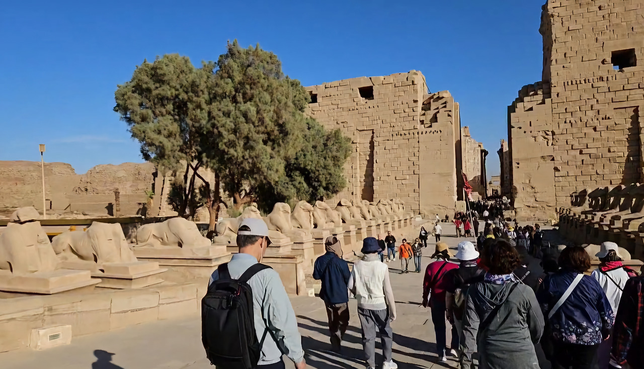 아스완에서 룩소르까지 즉 아스완 – 콤옴보 – 에드프 – 룩소르까지는 나일강 유람선에서 3박을 하며 강을 따라 이동했는데 나일강변에 줄지어 있는 크루즈가 그 역할을 했다. 대형 크루즈는 아니었지만 나일강변의 크루즈들은 제법 호텔 모습(3성급 수준)을 갖추고 있었고 정박할 때는 여러 크루즈들이 연결되어 흔들림을 막았고 크루즈 간 로비를 통해 이동하였다. 크루즈숙소 창가는 바로 나일강변이었고 강변의 멋진 풍경과 일출과 장엄한 석양을 보는 재미도 있었다. 크루즈에서는 매일 저녁 전통 공연이 있었지만 매일 파김치가 될 정도의 빡빡한 일정이라 저녁 먹고 바로 자버리는 바람에 볼 수 없었고, 선박 맨 위층에는 수영장과 선베드도 갖추고 있었지만, 우리가 머물 때는 날씨가 쌀쌀하고 바람이 심하게 불어 그곳을 이용하기는 어려웠다.