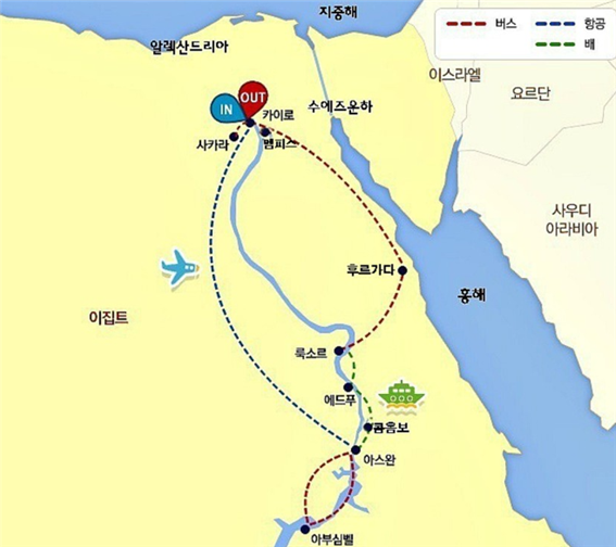 고대 이집트 여행을 다시 구분해 보면 신전과 무덤(피라미드, 미라) 그리고 그 유적을 한꺼번에 볼 수 있는 박물관을 둘러보는 것이었다. 이집트 여행의 특징이라면, 대부분의 국가 역사는 그 나라를 지배했던 왕 중심으로 되어 있고 그 왕들이 산 궁전이 중심이 되기 마련인데 이집트는 현세보다 내세를 더 중요하게 여겼기에 왕국을 지배한 왕(파라오)의 죽음과 관련한 유적지로 구성되어 있었다는 점이다. 그들은 나일강을 중심으로 서쪽은 죽은 자의 땅이라고 하여 ‘네크로폴리스’라고 했고 해가 뜨는 동쪽 편은 산자의 땅이라 해 ‘아크로 폴리스’라고 하였다. 그래서 죽음과 관련되는 유적지는 대체로 나일강 서쪽 편에 자리잡고 있었다.