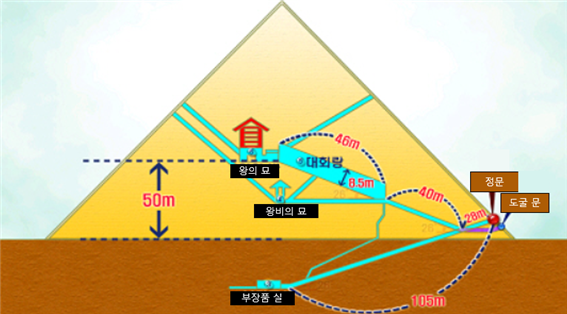 가장 규모가 큰 쿠푸왕의 피라미드는 높이 147미터에 밑변 230미터의 정방형 사각뿔 형태로 되어 있는데 무려 4500 년 전에 건립된 것으로 추정하고 있다. 그럼에도 높이가 10미터 정도 낮아졌을뿐 지진을 비롯한 여러 악조건의 자연환경 속에서도 무너지지 않은 채 버티고 있는 것이다. 여기에 쓰여진 돌은 평균 2.5톤의 바위를 230만 개라고 한다. 10년간 터를 닦고, 또 20년 간 구축하여 30년 걸렸고, 나일강의 범람이 있는 3개월 동안 매년 10만 명 이상이 동원되어 구축되었다고 한다.