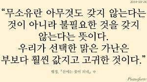 법정스님처럼 살기야 힘들겠지만, 잘 버리고 꼭 필요한 것만 갖는 것도 어쩌면 의식성장과 관련되어 있는 것 같다.