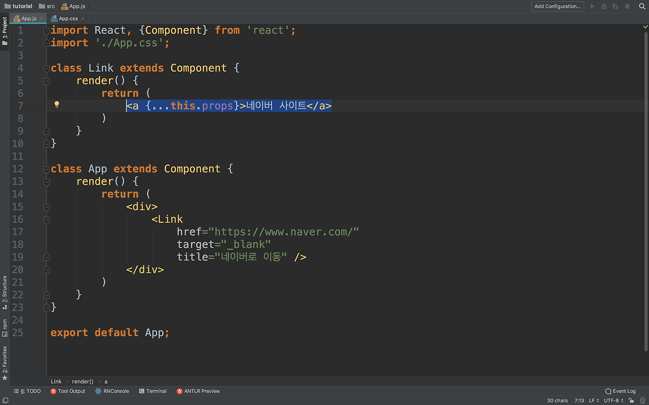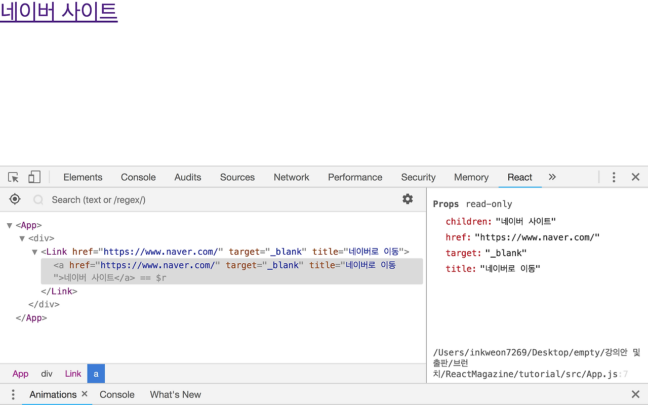 함수형 컴포넌트가 아니라 클래스 컴포넌트로도 props를 사용할 수 있다. 단, 이때는 {this.props.name} 처럼 this를 꼭 함께 입력해야 한다.