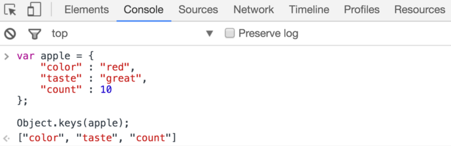 Object.key() 를 사용하면 Object 에 어떤 property 들이 나열되어 있는지 확인할 수 있습니다.