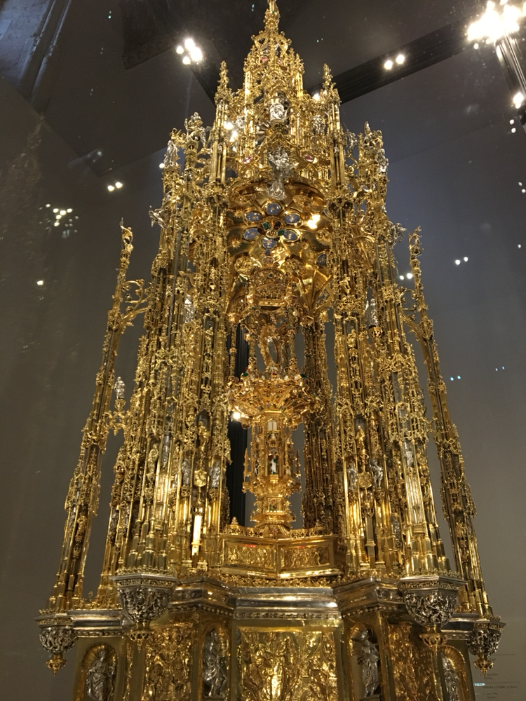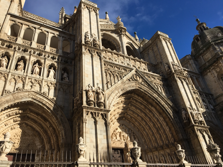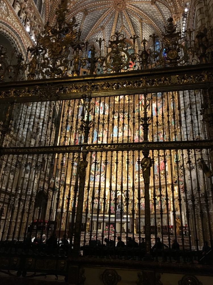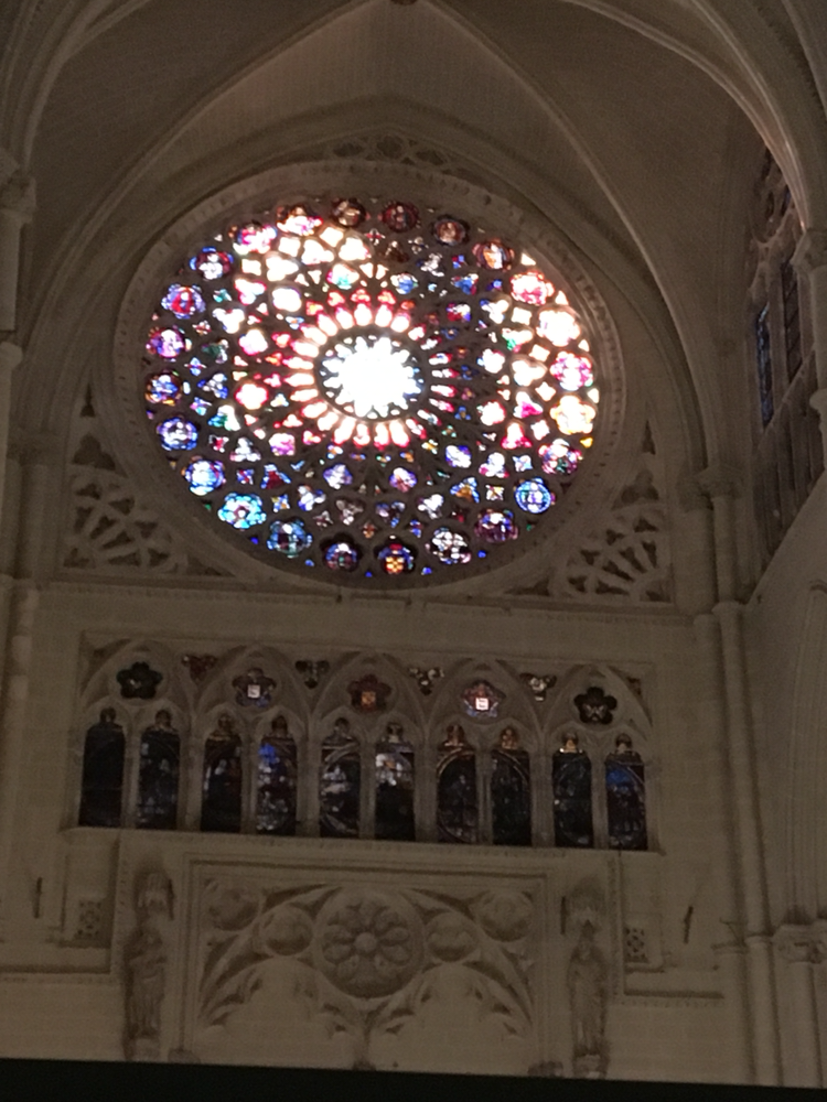 똘레도의 특산품인 칼 제품과 도자기 인형, 마사빵(수녀들이 성당 재원을 위해 만들어 팔던 간식류) 이런 것들은 구경할 여유 없이 곧바로 똘레도 대성당으로 향했다. 이 성당은 내가 스페인에 도착하고 처음으로 본 성당이었고 당연히 엄청나게 압도되었다. 웅장한 장미창의 스테인드 글래스, 이슬람 양식에 고딕, 르네상스 양식이 뒤섞인장엄한 실내 장식은 어디를 봐도 그야말로 예술품이었다. 시간 관계상 관람이 꽤 짧았는데, 마음 같아서는 오래오래 그 안에서 개기고 싶었다. 시선을 돌리는 곳마다 이런 말은 진부하고 호들갑스러워서 창피하지만 정말로 마음이 설레도록 아름다웠다.