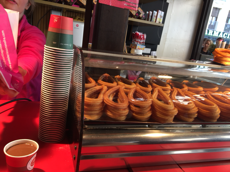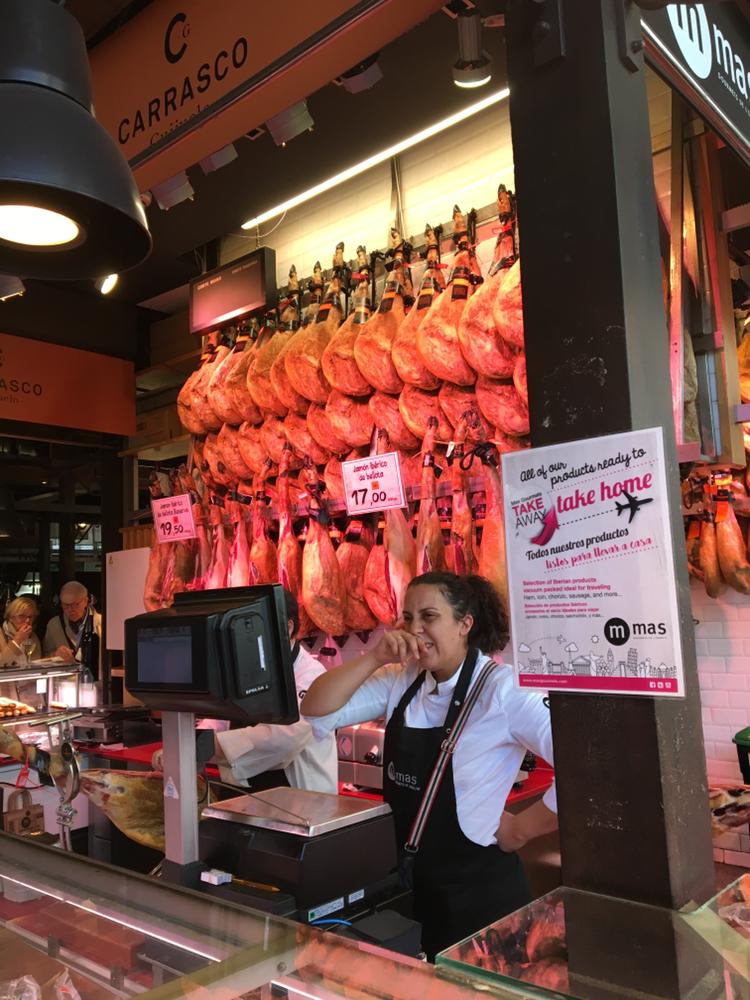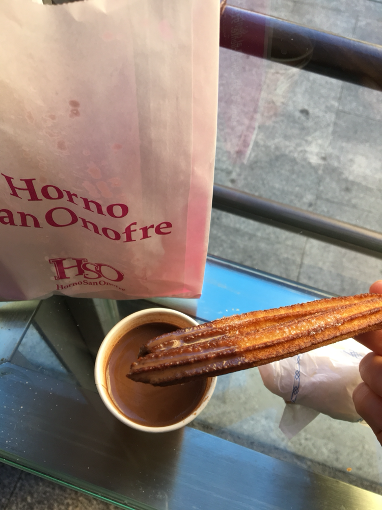 근처의 마요르 광장으로 이동해서 그곳에 있는 상점에 들렀고, 유럽의 광장 문화에 대한 이야기를 좀 들은 후에 해방되어서 찾아간 곳은 산 미구엘 시장인데, 옛날에는 제대로 '시장'의 역할을 했으나 이곳이 명동 같은 도심이 된 후에는 그럴 수가 없어 관광객들이 소량의 물건을 사는 작은 상점으로 바뀌었다고 들었다. 설명을 듣고는 그냥 시시하겠다... 했는데 웬걸? 작기는 해도 파는 물건은 꽤 다양하고 활기가 넘쳐서 정말 즐거웠다. 자유시간은 고작 20분이었지만 그 사이에 번갯불에 콩을 구울 기세로 따파스(스페인 특유의 애피타이저 겸 술안주인데, 술잔 위에 뚜껑처럼 덮어서 즐기던 간단한 요리, 저렴하고 맛있고 개성이 넘치는 핑거푸드가 대부분)를 사 먹고 츄러스를 사 먹었다. 사람이 미어 터지는 곳이어서 쉽지는 않았다. 셀프 쓰담쓰담하고 싶은 행동력이었다고.