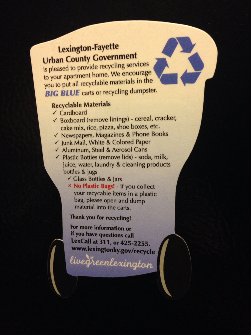 우리 아파트에 입주할 때 받은 쓰레기에 대한 지침에는 '플라스틱백(비닐)은 리사이클하지 않음'이라고 하니 쓰레기의 양은 더욱 더 환상적으로 늘어난다. 쓰레기가 많다 보니까 마트에서 아낌없이 주는 비닐봉지도 요령 있게 잘 받아오게 된다. (비닐봉지가 있어야 이 많은 쓰레기를 무사히 버리지) 장바구니를 가지고 가봐야 비닐봉지를 세 개 정도 줄이는 게 고작이긴 하다. (자꾸 미국사람처럼 물건을 많이 사게 된다)