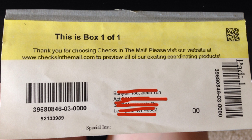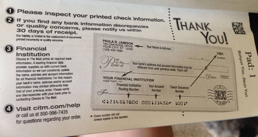 좀 오래된 영화이긴 하지만 '캐치미이프유캔'을 본 사람이라면 미국의 개인 수표 제도에 대해서 신기함을 느꼈을 것이다. 내가 찍찍 쓴 수표가 돈 대신 사용이 가능한 세계라니, 도대체 뭘 믿고? 싶지만 그것이 사실이다. 1월에 우리 공동계좌를 위해서 남편과 나는 수표책을 인터넷으로 샀다. 이 체크책은 거래은행에서 계좌를 만들 때 사은품으로 몇 장 주는데, 그것으로는 1년 동안 사용할 수가 없는 데다가 은행에서 사면 비싸다. (지금 기억이 안 나는데 그 차이가 살짝이 아니라 어마어마함) 은행에서 받을 때에야 은행에 내 계좌 정보가 다 있으니까 뭐 더 필요하지 않지만 인터넷 주문을 할 때에는 내 신분과 계좌에 대해 모두 기입을 해야 한다. 그래서 정확하게 내 이름이 인쇄된 수표가 주문제작되어 배달된다. 우린 25매짜리를 시켰는데 공과금 말고도 가끔 배달 한인마트에, 튜터에게 썼더니 갈 때까지 살짝 신경 써야지 모자라지 않겠다.