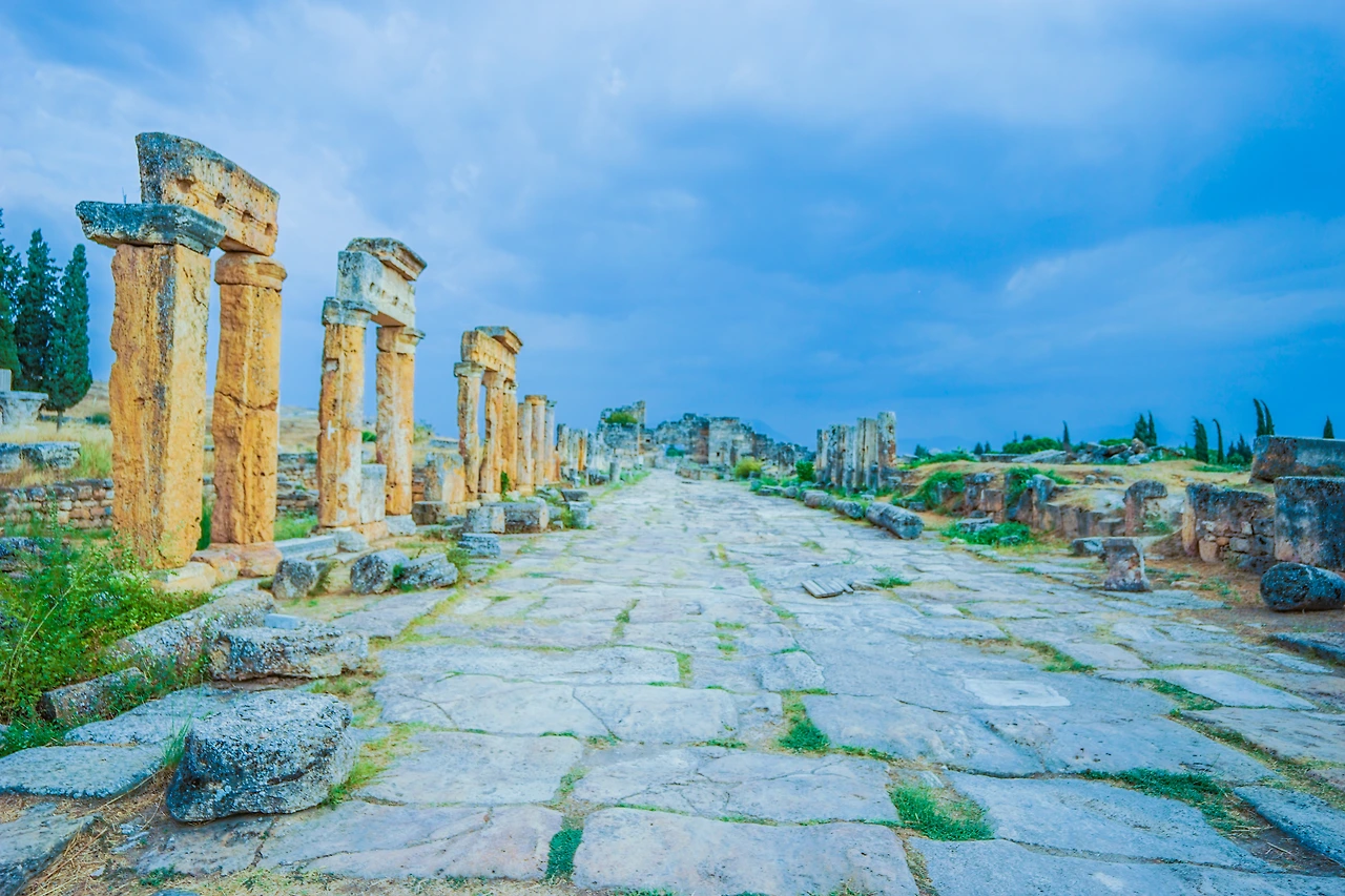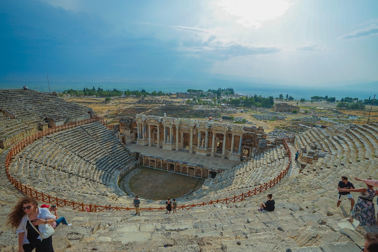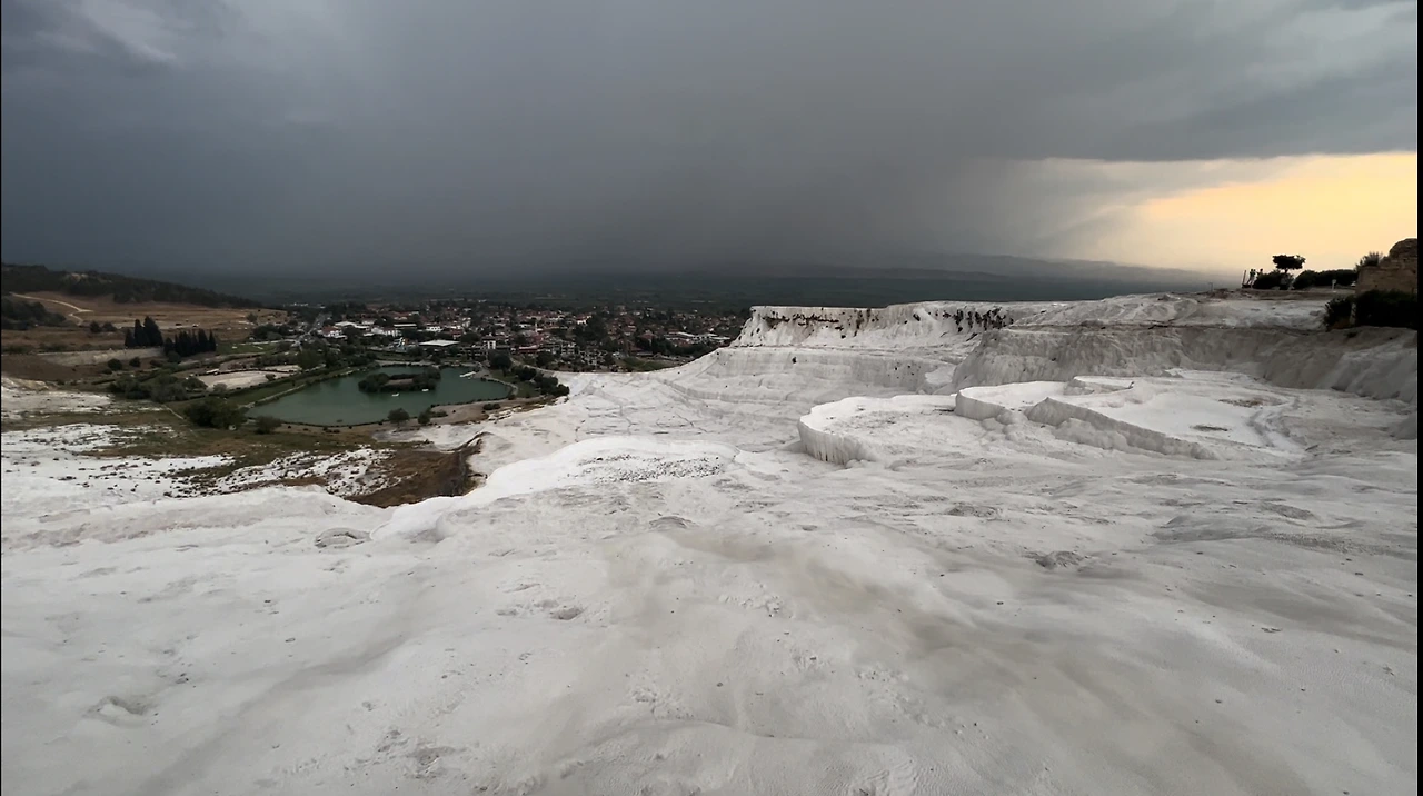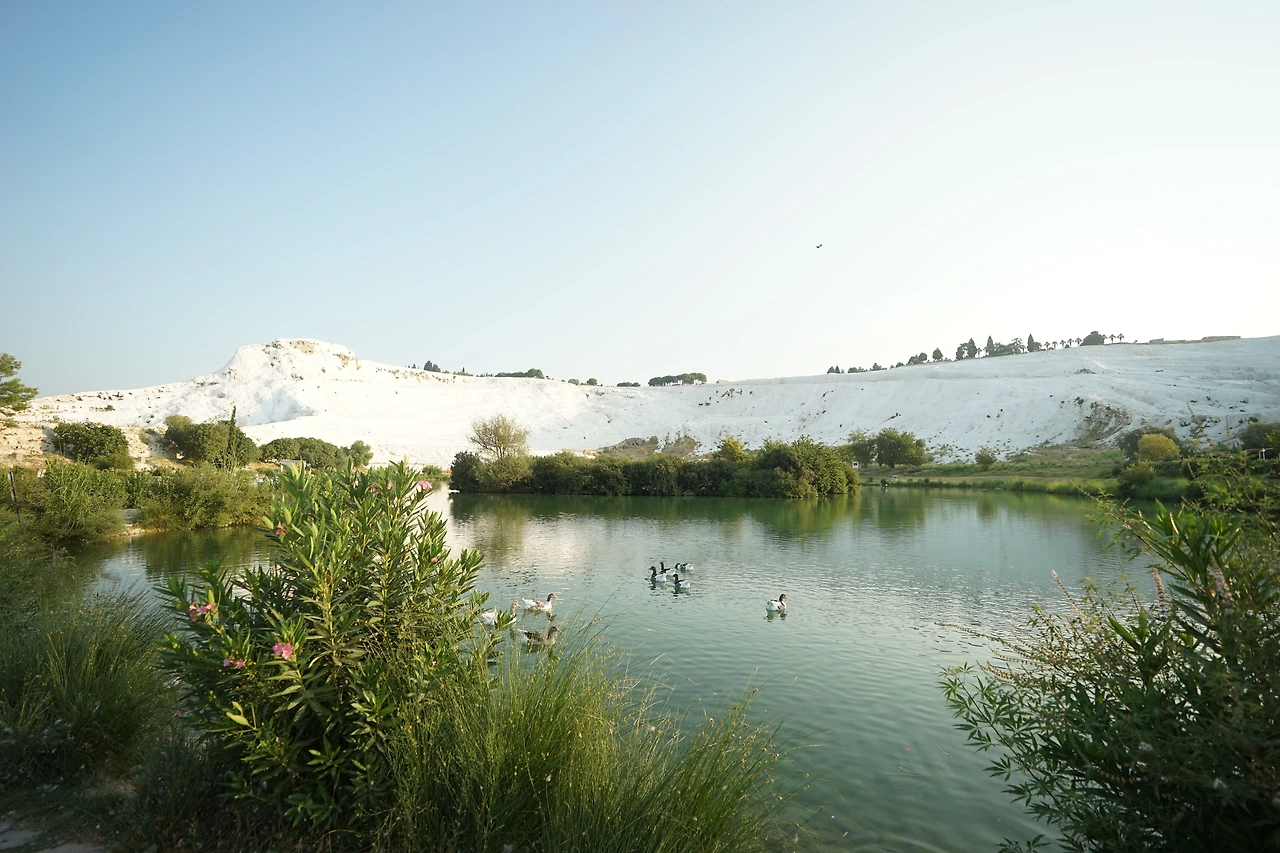 파묵칼레는 ‘목화의 성’이라는 뜻의 티르키예어로 이 지역의 높은 언덕에서 솟아나는 온천수가 아래로 흘러내리는 과정에서 석회성분이 쌓여 하얀색 성과 같은 모습을 하고 있어 붙여진 이름이다. 우리의 첫 번째 관광일정인 히에라폴리스 고고학 박물관이 이 석회봉지역을 포함하고 있었다.