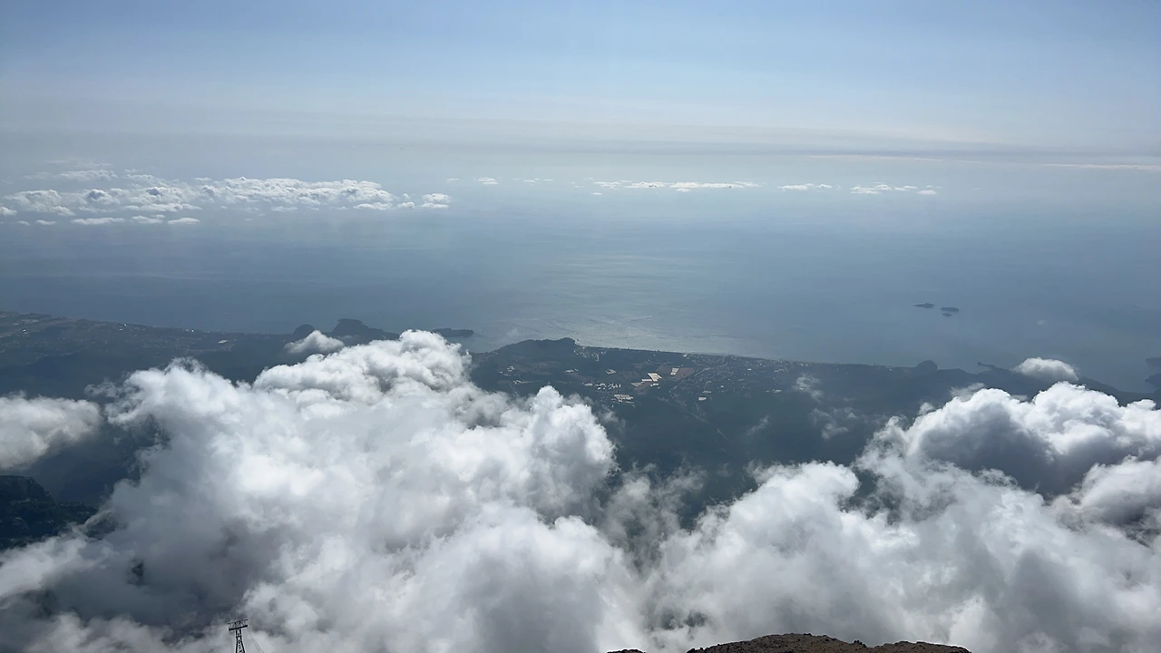 올림포스산 정상의 경치도 마음껏 즐기고 여유 있게 커피도 한잔 마신 후 우리는 일행과 모여 다시 케이블카를 타고 산 아래로 내려왔다. 산 아래로 내려오는 동안에는 케이블카가 산 중간에 걸쳐 있는 구름들을 계속 통과하며 내려와서 올라갈 때와는 또 다른 느낌을 주었다. 여행 전 내가 찾아본 블로그의 후기 중 절반정도는 산 정상에 올라가서도 구름이 많아 아래쪽 경치를 전혀 볼 수 없었다고 남겨져 있었고, 마지막 이스탄불 관광에도 케이블카 탑승일정이 또 있어서 올림포스산 케이블카 선택관광을 추가할지 말지 많은 고민 후에 어렵게 결정했었다. 결과적으로 다행히 우리는 운이 따라 주어 먼 곳의 산들과 지중해가 내려다보이는 풍경도 볼 수 있어 너무 감사했다.