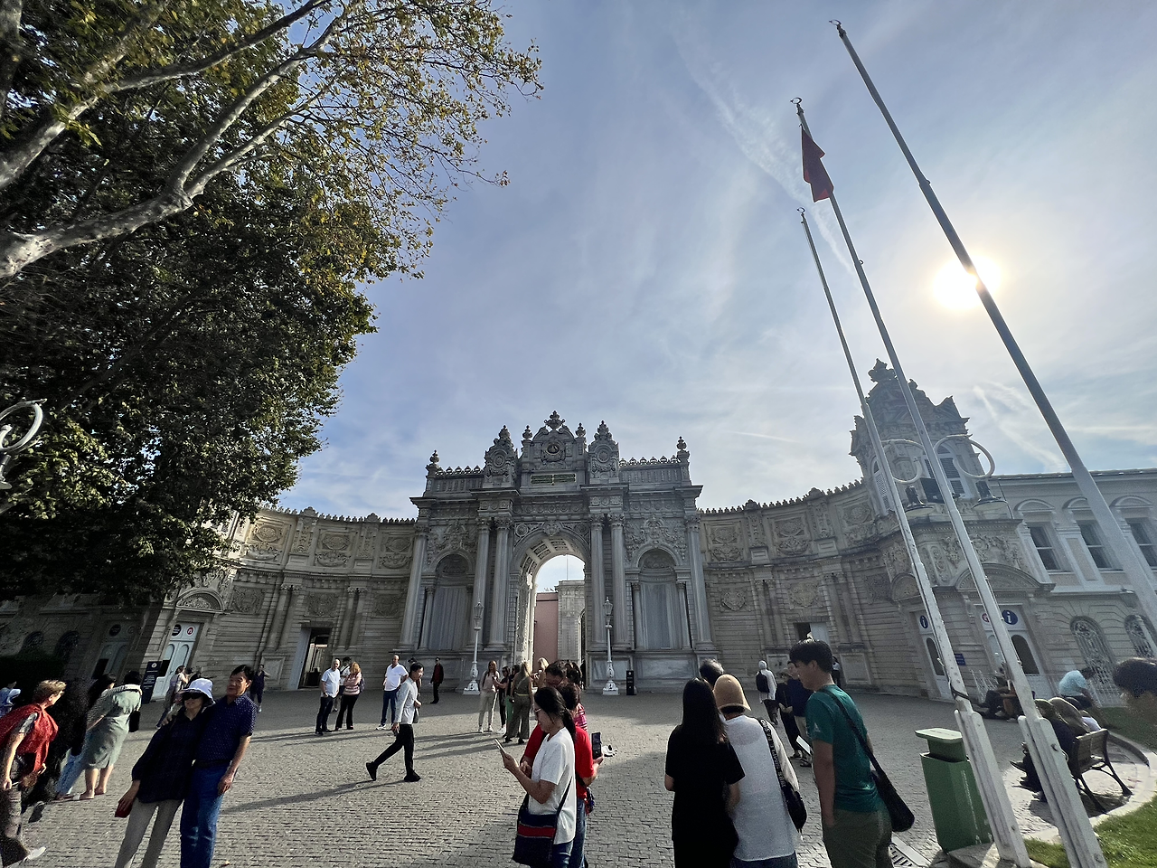 30여분 정도의 유람선 투어를 마치고 돌마바흐체 궁전으로 이동했다. 이곳은 오스만 제국의 궁전인데 ‘뜰로 가득 찬’이라는 의미의 ‘돌마바흐체’라는 이름이 붙여져 있다. 이름이 상징하는 의미에 걸맞게 들어가자마자 분수가 있는 아름 다운 정원을 만날 수 있었는데 매우 차분하고 고급스러운 분위기를 한껏 느낄 수 있었다. 건물은 직사각형 모양으로 전체적으로는 단순한 형태였지만 겉면이 매우 화려하고 섬세한 조각과 문양으로 꾸며져 있어 고급스럽고 호화로운 분위기를 뽐내고 있다. 건물의 내부가 더 장관이었는데 유럽의 각국에서 수입한 샹들리에와 가구, 장식품이 셀 수 없이 많은 방들과 복도 구석구석을 장식하고 있어 놀라웠다. 아주 먼 옛날부터 육로로 연결되어 있는 유럽의 여러 나라들이 서로 교역을 했던 품목들에 크기는 중요치 않았다는 사실이 놀랍기도 했고, 오스만 제국이 한때 얼마나 융성했는지도 알 수 있었다.