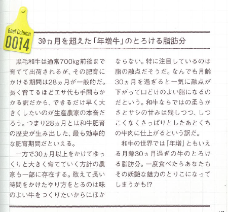 일본 와규가 28개월 이상 30개월 이상 키워 지방의 융점이 낮아져 맛있다고 한다.