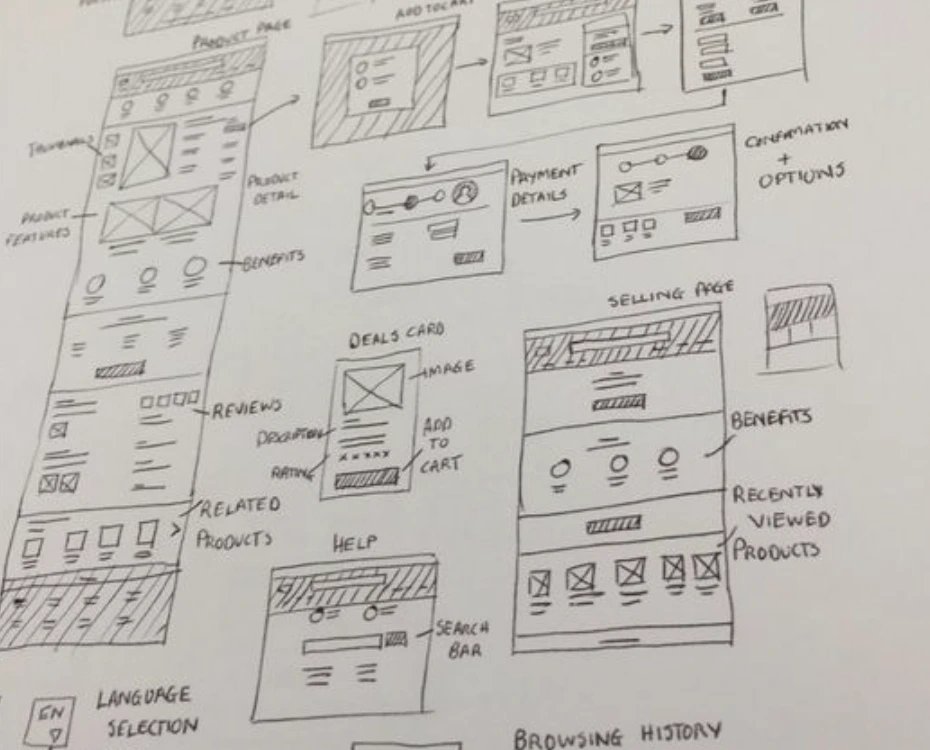 어떤 서비스를 기획하면서 필요한 각각의 화면을 쓱~ 쓱 그려보고 , 언제든 쉽게 버려도 부담 없는 퀄리티로 이해관계자와 의사결정을 해가면서 제품을 완성하는 과정에 쓰이는 그림들..