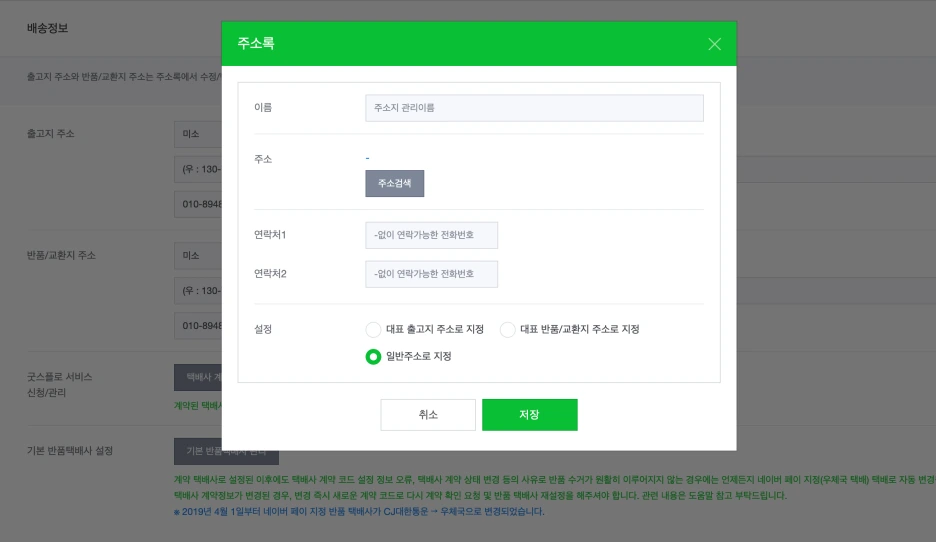 플랫폼에서는 이런 다양한 사업자의 케이스를 수용할 수 있도록 마련해야 한다. 어떤 플랫폼이든, 상품을 등록하는 판매자 관리센터에는 "판매자 정보" 등록을 하는 곳이 있는데 사업자의 소재지, 제품의 출고지, 고객이 반품을 보내는 반품지 주소 정보를 입력하게 되어 있다.