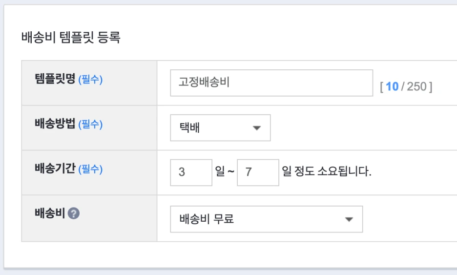 #배송비템플릿 등록이라고 표현되는 등록 화면이 있는데 ~ 이유는 한번 등록을 해둔 배송비 조건을 코드화하여 앞으로 등록하는 상품마다 새로 설정할 필요 없이 쉽게 '템플릿명'을 보면서 사용하도록 배송정책을 따로 등록해두는 것을 '템플릿'이라고 부르고 쓰이고 있다.
