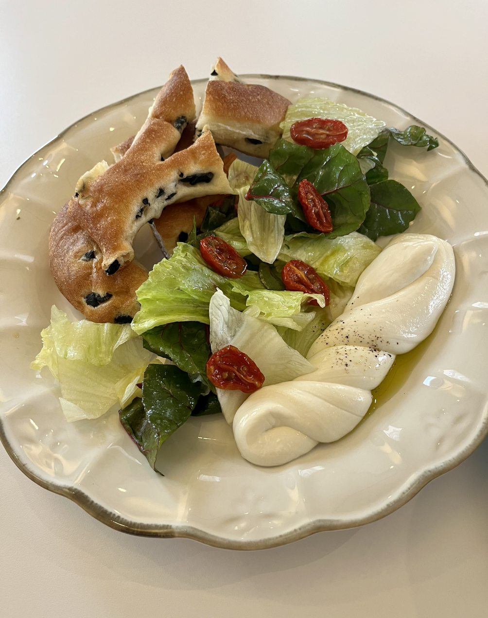 고소한 올리브 빵과 신선한 야채, 따끈따끈한 수제 치즈까지 아주 맛있게 먹었다.