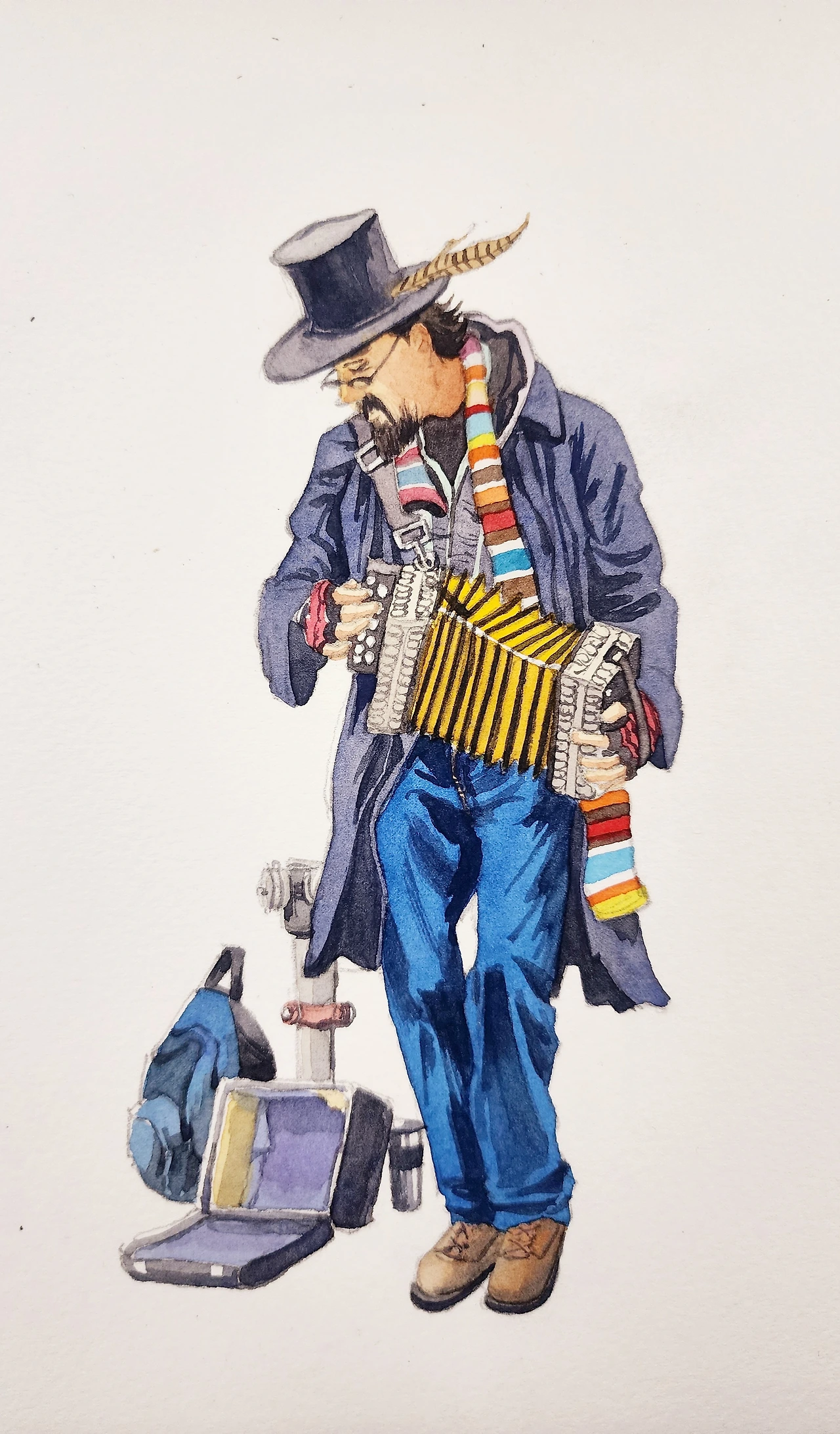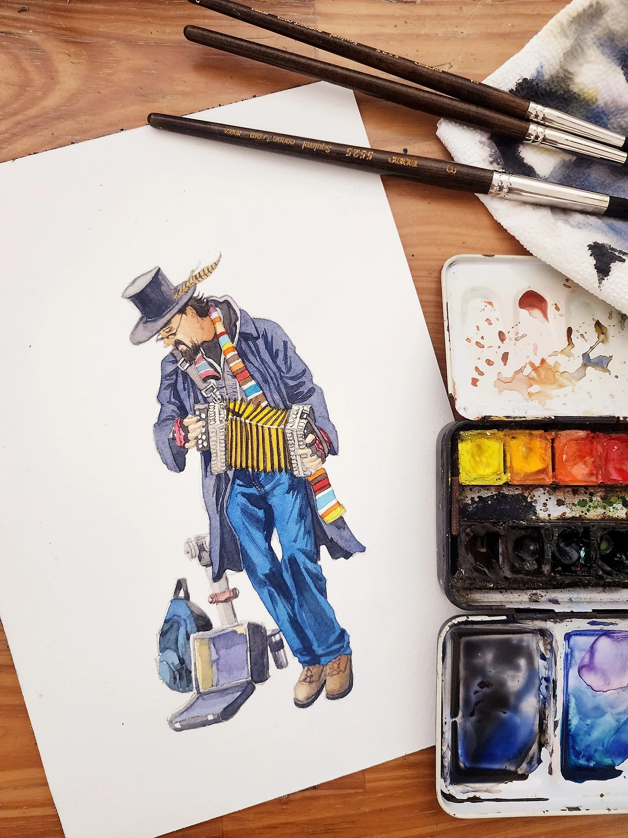 인사동이나 정동길 같은 거리를 걷거나, 여행 중 길을 걷다 보면 노래를 하거나 악기를 연주하는 사람들을 만날 때가 있다. 어떤 때에는 그저 시끄럽게 들릴 때도 있지만 가끔은 지나던 발길을 잡아두거나 마음이 몽글몽글해질 정도로 사람을 홀리는 음색이 들려올 때가 있다. . 가끔 영화나 다큐 같은 데서 길거리 버스킹하는 사람들의 이야기를 다루는 것을 보면 그들의 삶 또한 녹록지가 않던데 그들은 어떤 마음과 열정으로 저 자리에 서는 걸까 하는 생각이 든다. 그리고 그런 간절함이 더욱 절실한 사람들 일수록 음악을 대하거나 준비과정이 남다르다는 걸 알게 된다. 그런 마음은 그들의 음악에 그대로 반영이 된다. . 그림도 마찬가지다. 그저 기술적이고 습관처럼 그리는 그림이 아니라 어떤 생각과 마음을 담아 그렸는지, 표현하고 싶은 바람이 과연 잘 담겼는지 고민해봐야 한다. 오늘 나의 그림은 세상과 소통하고자 하는 간절함이 담겨있는지, 그림을 대하는 '초심'이 바뀌지는 않았는지 다시 생각해 보게 된다.