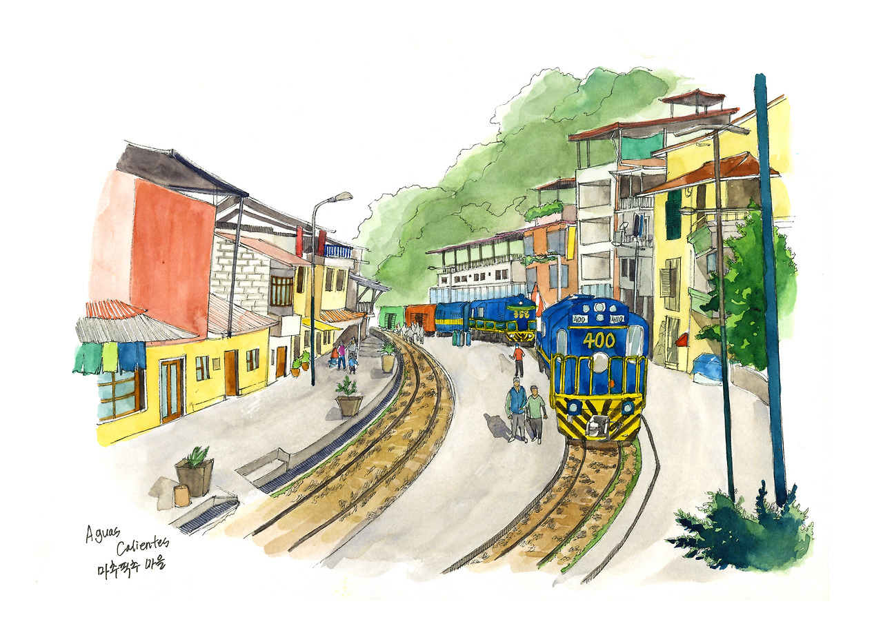 어느덧 열차는 목적지인 아구아스 깔리엔테스, 마추픽추 마을에 정차했다. 무더위 속 비는 반가운 소식이지만 하필이면 이동하는 지금이라니. 배낭에서 우산을 꺼내고 가방에는 방수커버를 씌었다.
