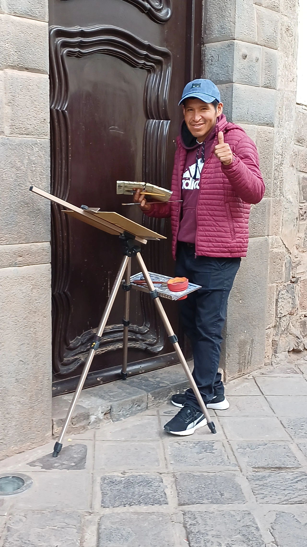 아르마스광장에서 산등성이에 알록달록 앉은 집들을 멍하니 보는데 누가 어깨를 친다. 식사멤버인 두 아저씨다(거의 나랑 갑장들) 셋이 아르마스광장, 잉카시절 석조기술의 완전체라는 12 각돌, 대성당, 주변 마을길을 돌았다. 고위직 공무원 출신으로 최근에 은퇴했다는 두 아저씨가 12각 돌에 푹 빠져 원리를 설명하는 동영상을 서로 찍어주는데 귀엽더구먼. 며칠 동안 보여준 이미지가 어지간히 점잖았는데 반전.