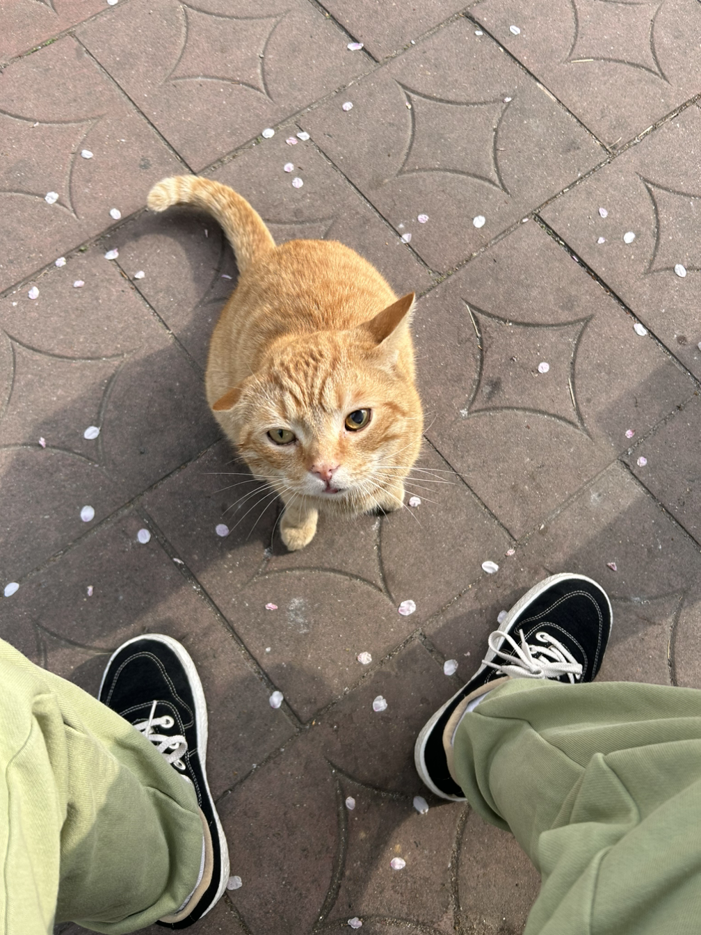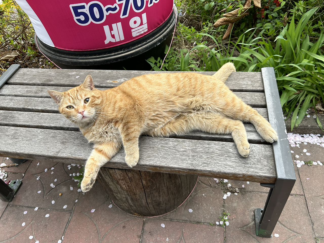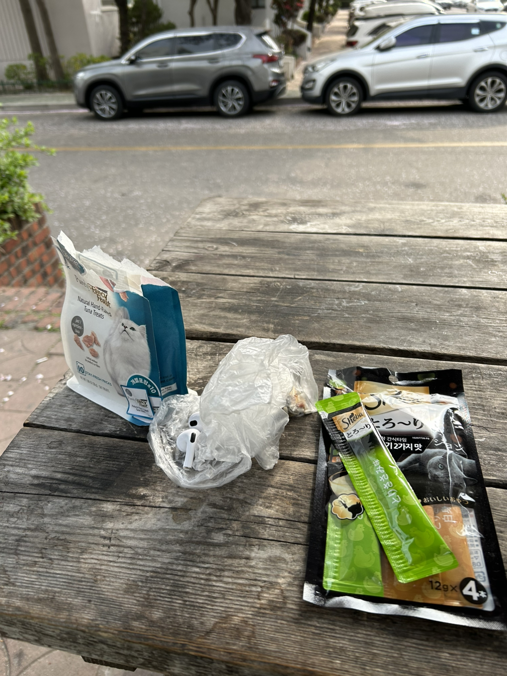 쉬바를 까주려는데 갑자기 한 무리의 귀여운 초등 남들이 자전거를 타고 나타났다. 아이들은 냥님과 이미 친한 듯 인사를 건네며 사진도 찍었다. 내가 아는 사이냐고 물어보자 서로 여기 사는 고양이이며 뒤쪽에 범이라는 고양이와 또 한 마리가 더 있다고 대답하기 바빴다. 그러면서 자꾸 살이 쪄서 이제 츄르는 금지라고 알려줬다. 짜식… 어쩐지 동글동글 하더라니. 아이들도 귀엽고 고양이도 귀엽고 귀여움 대잔치였다.