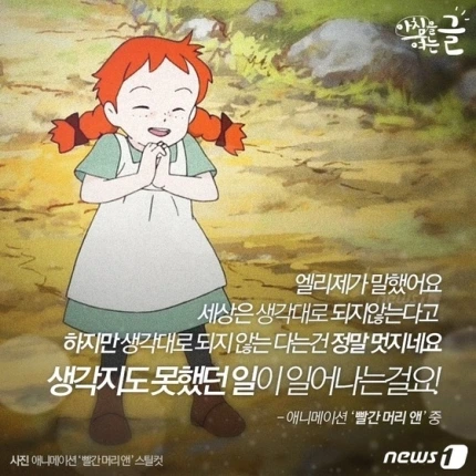 영원할 것 같은 행복은 없다. 우린 행복한 순간에 불행해질까 봐 더 불안하다. 영원할 것 같은 불행은 있다. 역시나 난 행복하게 살 사람이 아니라는 생각이 날 지배하기 때문이다. 하지만 행복은 크기가 아니라 빈도라는 말처럼 생활 속에서의 작은 행복과 아름다움에 감탄하는 순간이 많아진다면 우린 빨간 머리 앤처럼 말할 수 있을 것이다.