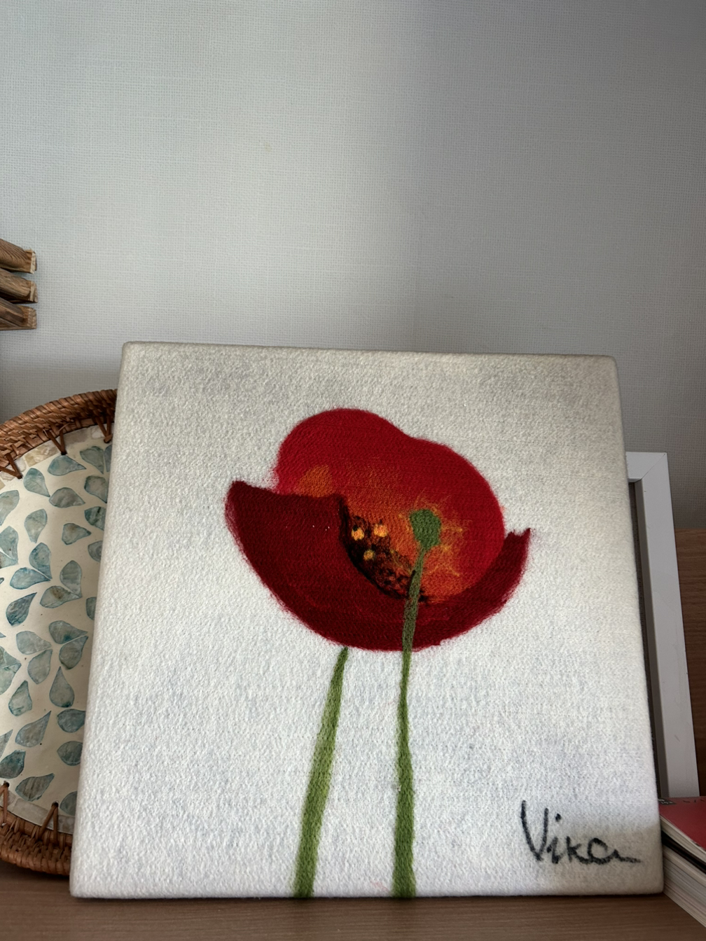 그곳에 한 가게에서 이 작품을 구매했다. 가격은 기억은 나지 않지만 엄마에게 선물하고 싶었다. 펠트 같은 천에다가 한 땀 한 땀 수놓듯 만든 작품이었는데 마음에 들어서 엄마에게 선물했었다.
