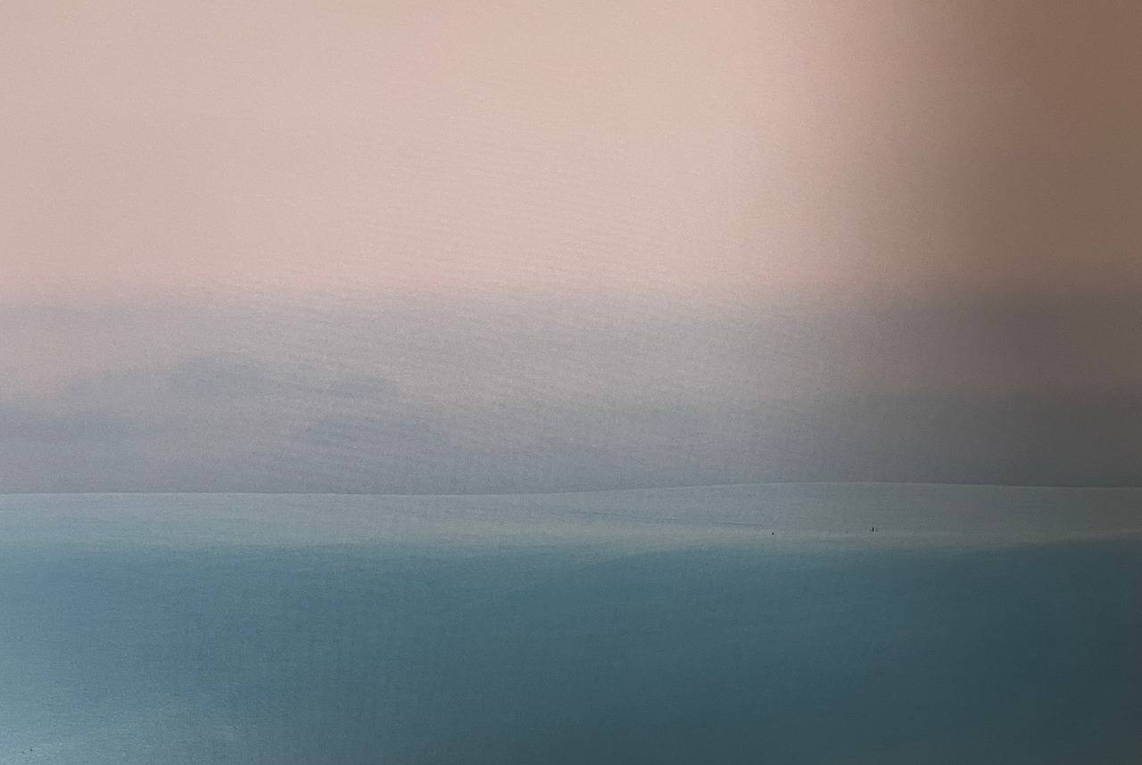 수평선은 사라지고, 하늘과 바다는 하나로 흐려집니다.