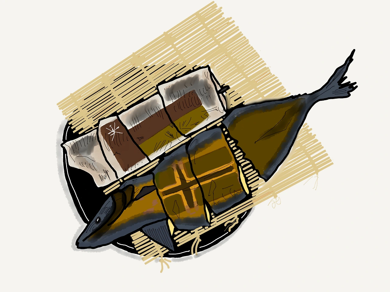 어부나라에서 만난 두 나라. 세상 먼 아라비아해와 북해에서 유영하던 두 마리의 생선들.(갈치는 대충 3분의 1 마리 정도 되어 보이는 양이다.)