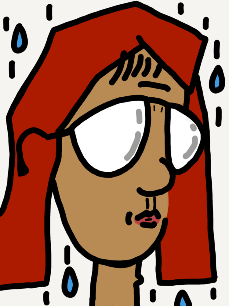 12시부터 3시까지 비 예보가 있었다. 12시에 라운지를 나설 때 아무 생각 없었다. 반팔, 반바지에 운동화로 갈아 신고, 선글라스에 오른쪽 귀에 이어폰, 빨간 손수건(치곤 좀 커다란)과 휴대폰을 들고 여느 때와 같이 경사를 오른다. 정상을 돌아 간이 체육공원?에서 45kg 무게로 벤치프레스 15개를 하고 내려오려는 찰나에 일기예보가 맞아 들기 시작했다. 빗줄기가 제법 굵다. 산길 중간중간 잎이 무성한 나무 아래로는 옹기종기 등산객들이 보인다. 그럴 시간이 없다. 점심시간 안에 복귀해야 한다. 빨간 수건을 머리에 쓰고 선글라스… 아 귀에 거는 부분을 뭐라고 하지?…. 아… 안경다리. 안경다리로 수건을 눌러 귀에 고정. 날 멈출 순 없어.