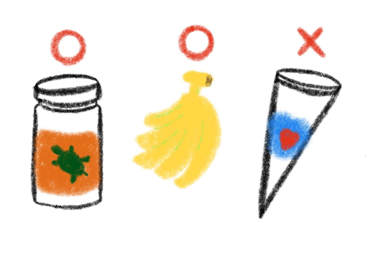 슈퍼에서 바나나 한 묶음에 잡곡, 계산대 앞에 있는 딸기샌드, 단팥빵, 치즈케이크 하나씩 추가.