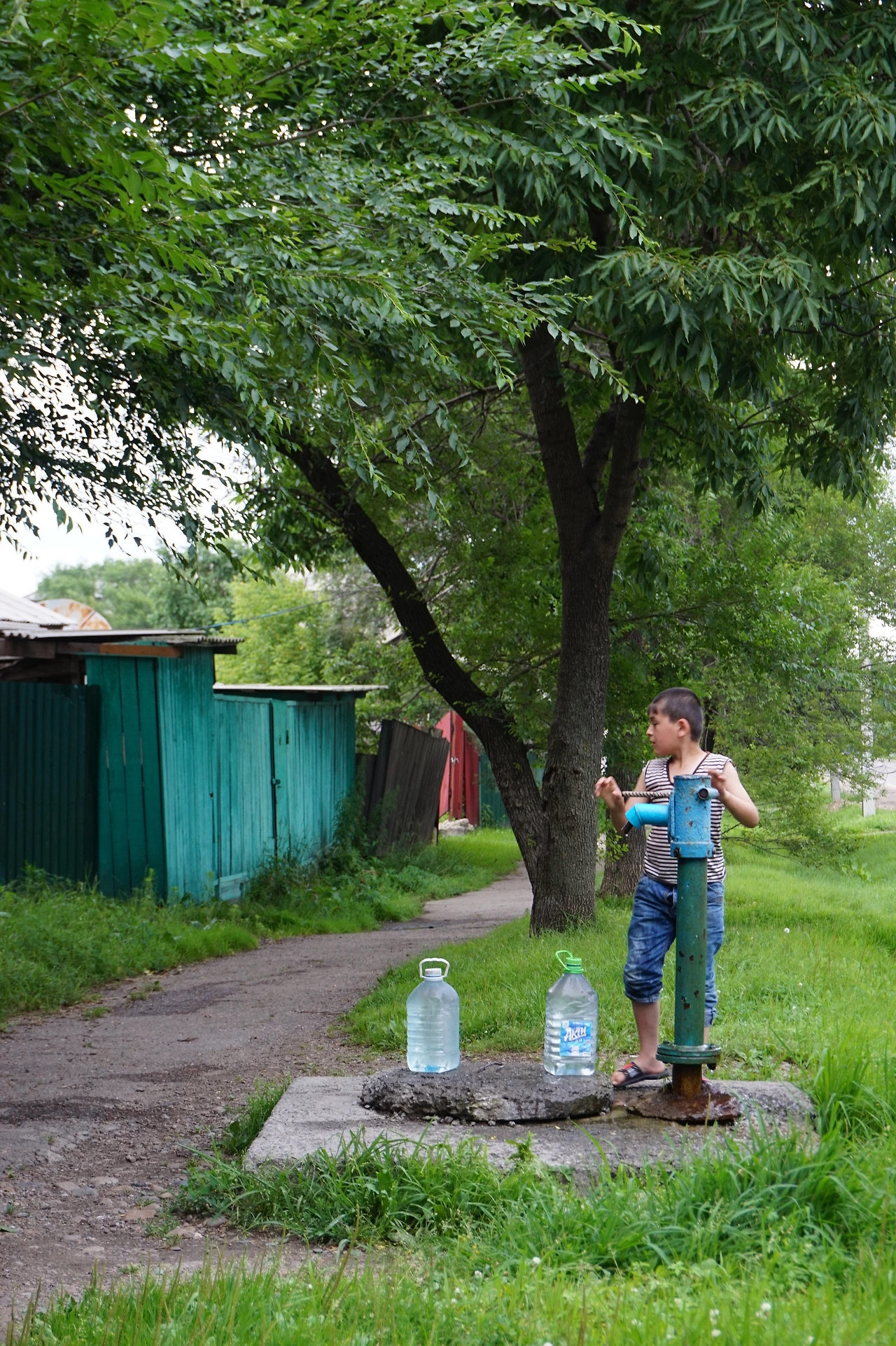 “우수리스크 사람들은 아파트를 좋아할까요, 주택을 좋아할까요? 정답은 아파트예요. 이유가 뭘까요? 아파트에 수돗물이 잘 공급되거든요. 중심지를 벗어나면 주택들이 많아요. 보기에도 큰 주택들이죠. 그런데 수돗물 공급은 아파트만큼 잘 되지 않아요. 저는 도르 공원에 갔다가 외곽을 좀 더 걸어 보았어요. 한 꼬마가 물통을 두 개 들고 나와서 펌프에서 물을 담고 있었어요. 일을 마쳤지만 끙끙대고 있었지요. ㄱ 자의 쇠를 펌프에서 빼내지 못하고 있었던 거예요. 물을 퍼기 위해선 그것을 펌프에 끼워야 했고 일이 끝나면 빼서 집에 가져가야 하는데 그게 안 빠졌던 거예요. 꼬마를 도와 그것을 빼내자 꼬마는 그걸 겨드랑이에 끼고 양손에 물통을 들고 기우뚱 걸어갔어요. 아파트에서는 그렇게 물을 길어다 쓰는 수고를 하지 않아도 되지요."