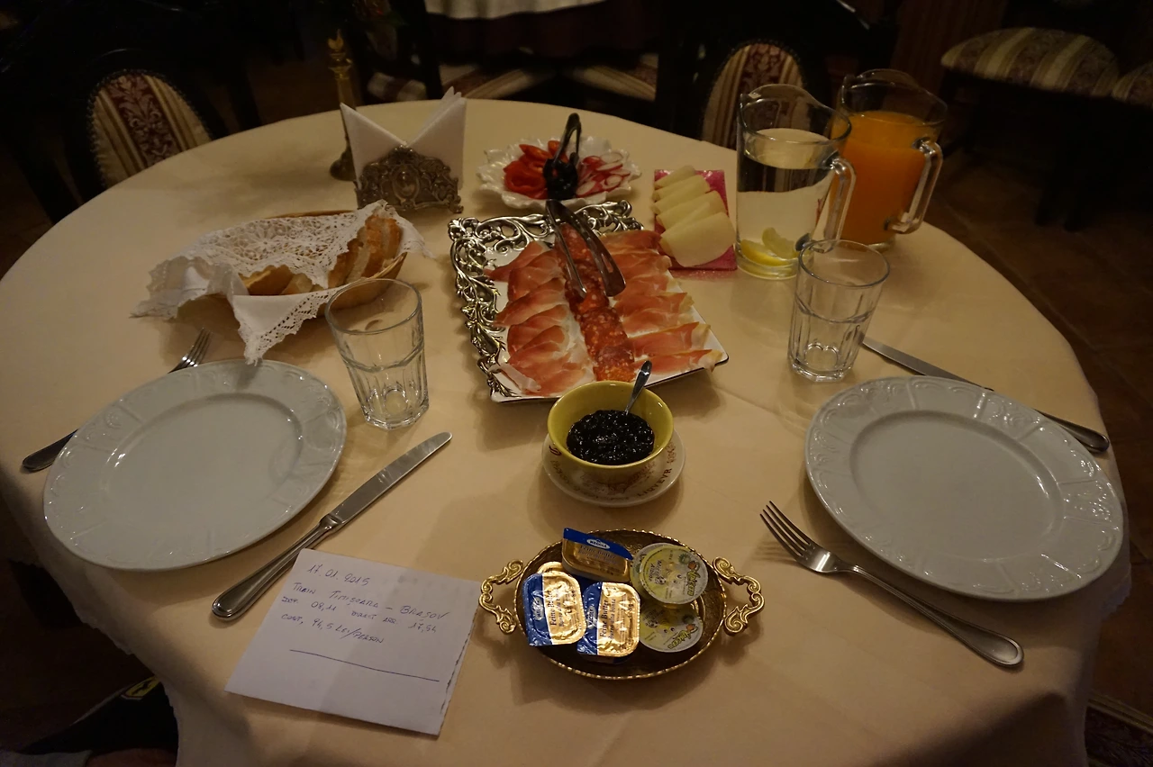 저녁을 예약했다. 제이를 깨워 아래층으로 향했다. 내려가는 복도와 계단엔 불이 켜지고 음악이 흘러나왔다. 촛불 켜진 식탁 위로 음식이 차려졌다. 브로콜리와 버터에 구운 닭고기였다. 함께 나온 빵은 하얀 천에 덮여 있었는데 따뜻했다. 접시 위에 접시를 놓는 루마니아 식기는 어색하면서도 고풍스러운 느낌이었다.