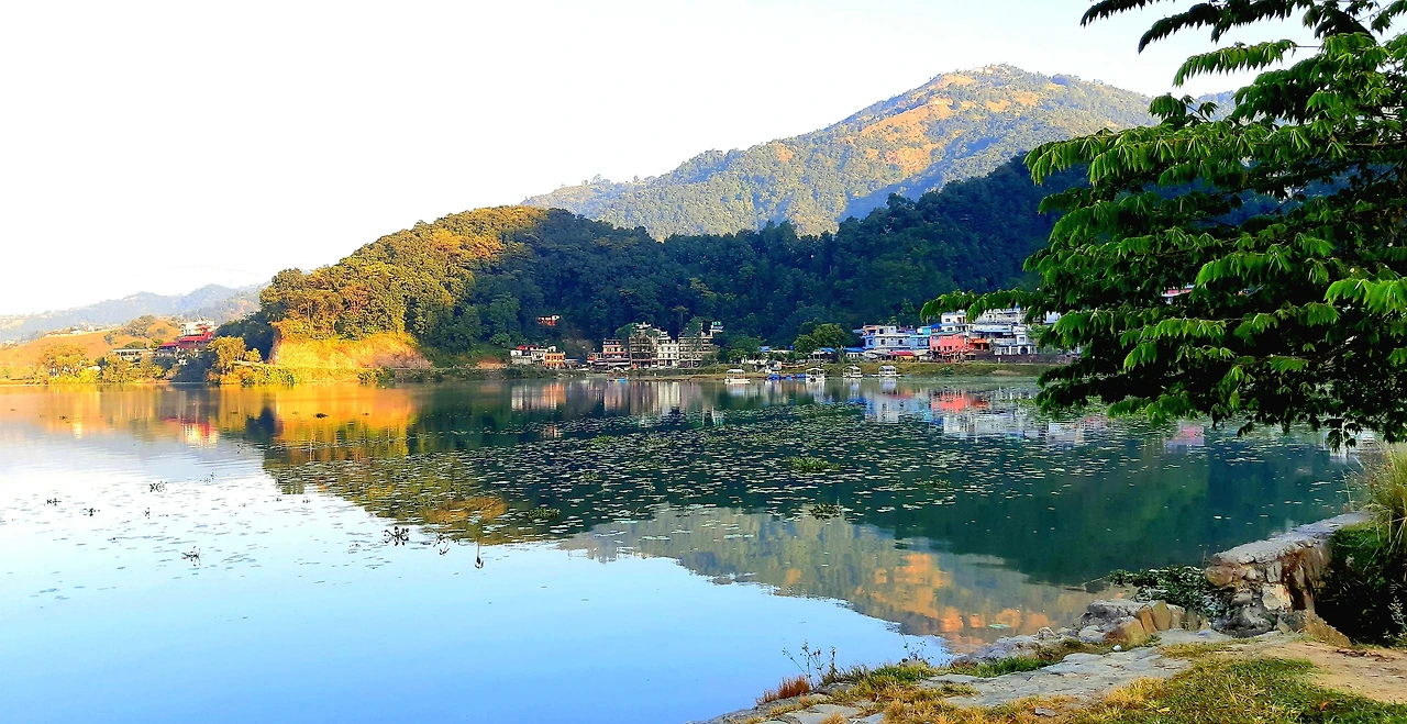 어느 순간 고요가 찾아왔다. 아래를 보니 페와호다. 가늠되지 않던 호수가 한눈에 보인다. 호수 안의 섬이 주먹만 하다. 저 멀리 포카라 시내는 그림엽서를 펼쳐 놓은 것 같다. 호수 끝 습지에는 히말라야 빙하에서 녹은 물이 하얀 실핏줄처럼 얼기설기 흘러내린다. 은빛 가루를 뿌린 듯 영롱하게 반짝이는 수면 위로 내 그림자가 지나간다.