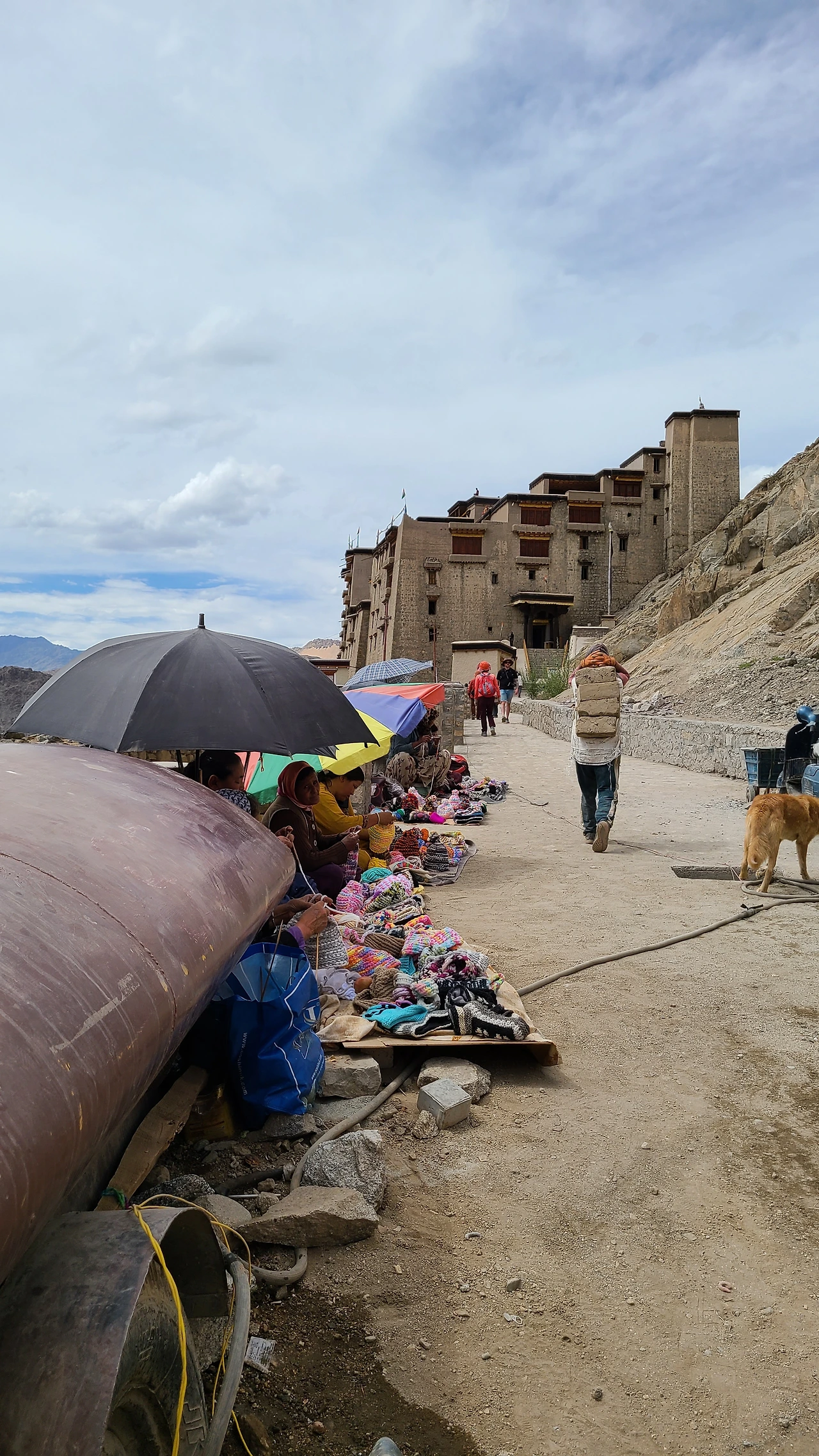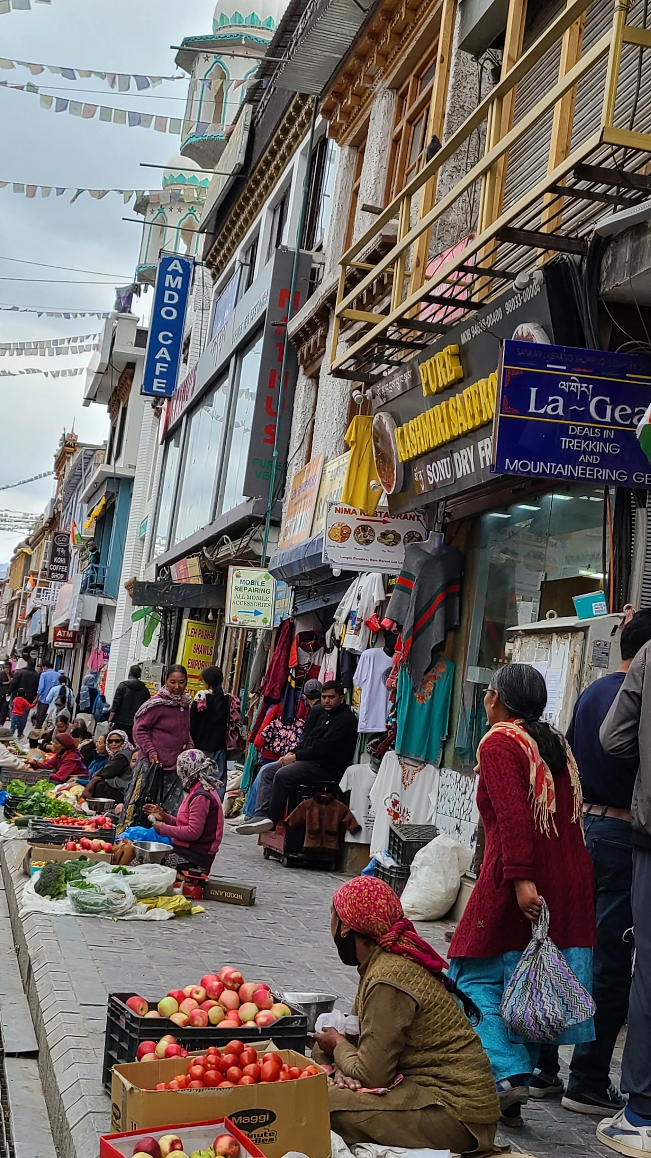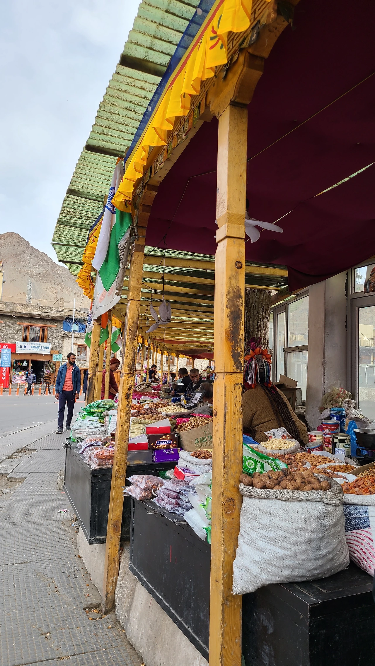 꽤 넓은 중앙 통로 겸 광장을 사이에 두고 양쪽으로 상점들이 나열되었다. 바자르는 ㄱ자로 꺾여 있는데 전통복, 등산용품, 인도 히말라야 화장품점, 파시미나 상점, 라다크 서점 등 일상생활용품부터 장식물 등 있을 건 있고 없는 것은 없는 꽤 큰 시장이다. 캐시미어 가게에서 무늬가 화려한 목도리를 하나 샀다. 아이를 안은 젊은 여인이 손을 내밀며 한 푼 달라고 한다. 잔돈이 있으면 건네고 싶지만 환전할 때 모두 2000루피짜리만 주어 잔돈이 없다.
