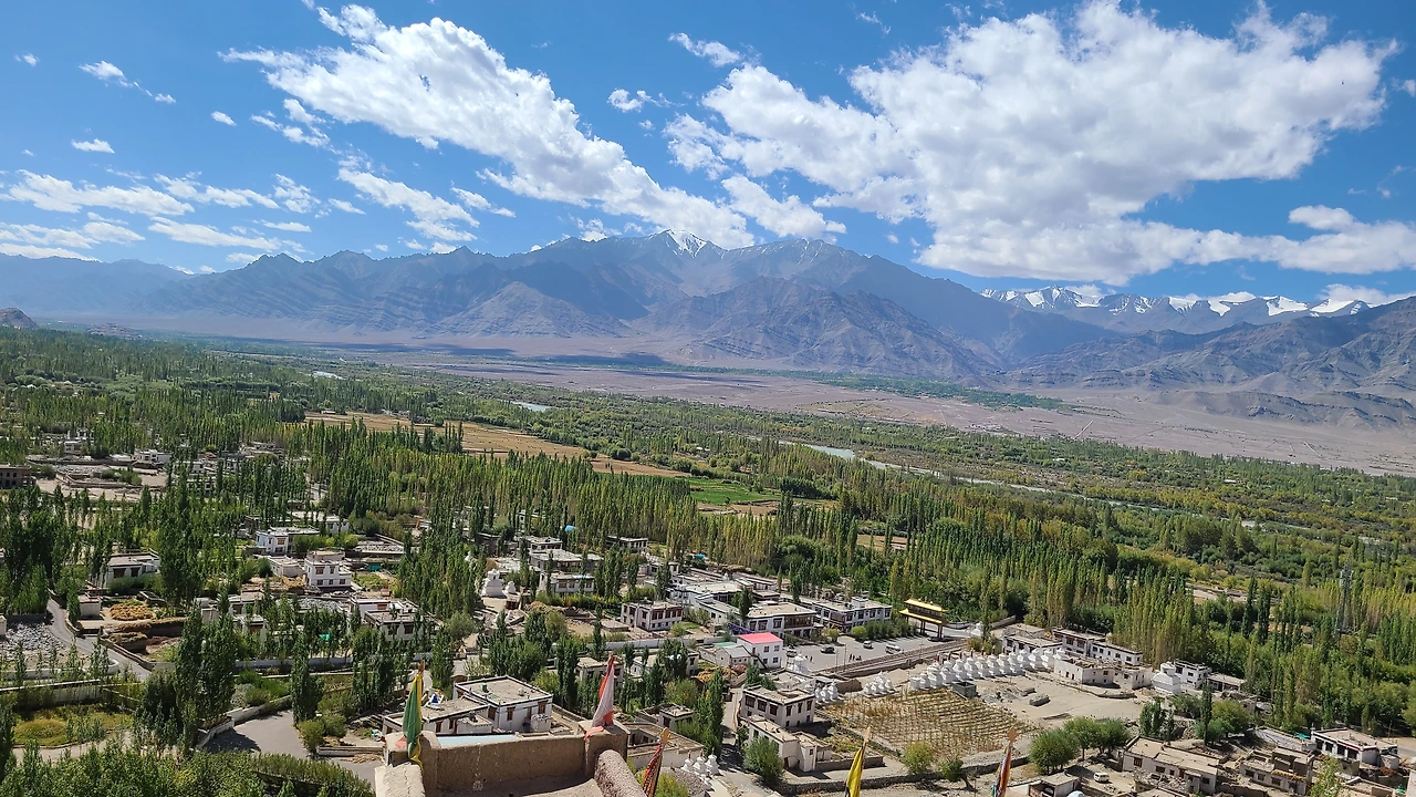 왕궁 내부와 왕궁에서 본 레의 풍경.남갈 곰파