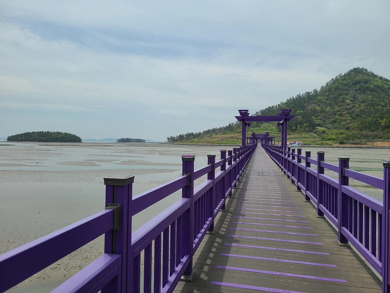 섬에서 섬으로 잇는 노둣길과 마을의 지붕들, 푯말들을 모두 보라색으로 칠해 퍼플 섬으로 불리는 박지도와 반월도를 돌아보고 나니 오후 3시쯤 되었다. 아침에 푸른 물결이 찰랑이던 퍼플교 아래는 뻘밭으로 변해 칠게와 농게, 망둥어 등이 빠금거린다. 나른한 봄날 물 빠진 갯벌에는 그 외에도 온갖 살아있는 것들이 쉴 새 없이 꼬물거린다.