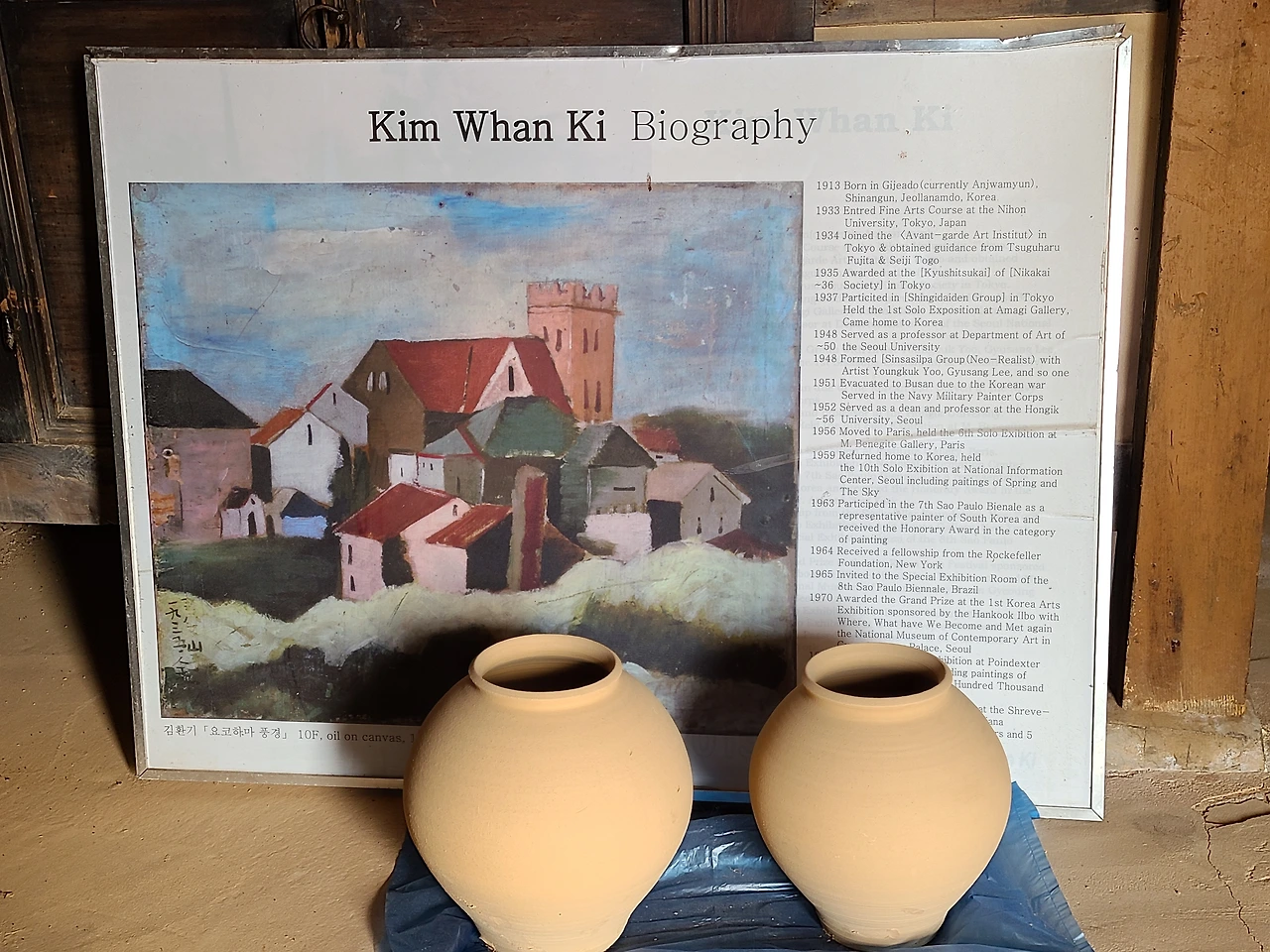 문이 닫힌 안좌도 여객선터미널 벽면에 김환기의 그림이 모사되어 있다. 이곳은 화가 김환기의 고향이다. 유난히 넓은 터미널 광장에는 아침햇살만 가득하고 식당 간판을 단 아담한 주택에는 인기척이 없다. 여기서 1km 정도 떨어진 면사무소 근처에 버스 정류장이 있다고 했다. 상쾌한 아침 공기를 마시며 타박타박 걷는데 이번에는 ‘론도’다. 직선과 곡선을 적절히 배합하여 사람 모양의 추상화를 그린 김환기의 작품 ‘론도’가 그가 태어난 마을 표석에 새겨져 있다.