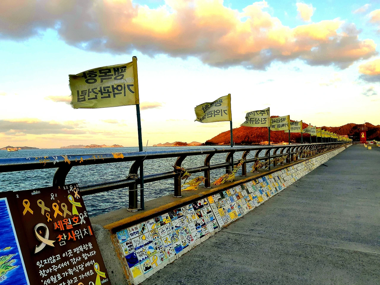 희붐한 새벽, 파리한 불빛을 내비치는 진도항 대합실은 왠지 고단해 보인다. 먹빛의 바다는 이내 어둠을 몰아내며 시퍼런 물결을 드러낸다. 긴 방파제에는 이승의 생생한 추억을 새긴 타일 벽화가 동트는 햇살에 희미하게 빛난다. 떠난 자를 그리워하는 마음은 노란 리본이 되어 갯바람에 나부낀다. 저마다의 상처들이 싸한 바람소리를 낸다. 세월에 삭은 운동화 한 짝이 제 주인을 기억하려고 안간힘을 쓰는 것처럼 보인다.