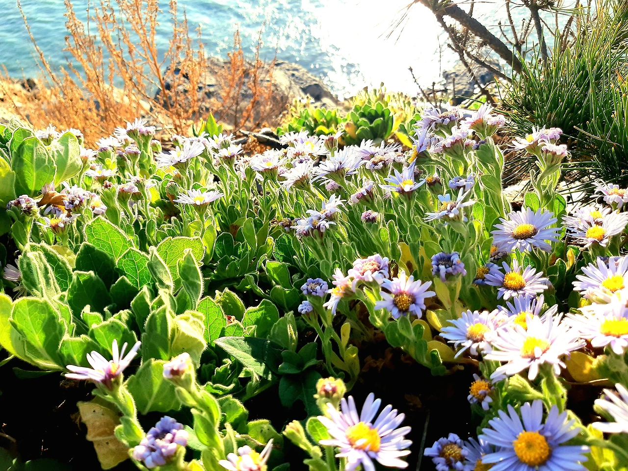 낮은 수풀 사이로 희미하게 난 길을 따라 해안으로 간다. 넓은 암반 끝에 거북손과 따개비가 다닥다닥 붙어 있다. 이 갈래 저 갈래 해안으로 통하는 길마다 걸음을 옮겨본다. 해식애가 발달한 섬답게 아찔한 높이에서 바라보는 바다는 늦은 오후의 햇살에 반짝거린다. 다복다복 피어 있는 해국의 말간 얼굴, 알알이 붉은 속살을 드러낸 돈나무가 가을임을 알린다. 이 섬은 각다귀나 날파리 모기 같은 벌레들도 없다. 그야말로 청정한 섬이다.