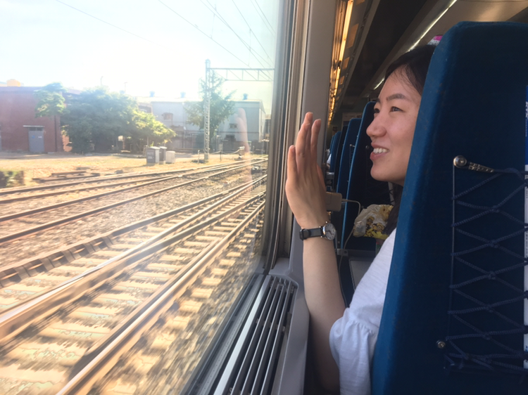 졸리지만 자고 싶지 않은 우리들은 재잘재잘 수다를 떨었다. 조용한 아침 기차 안에서 어찌나 눈치가 보이던지. 세명이라 뒷자리에 앉았던 나는 기차 속도가 빨라질수록 대화 소리가 들리지 않아 조용히 창밖을 바라보았다.
