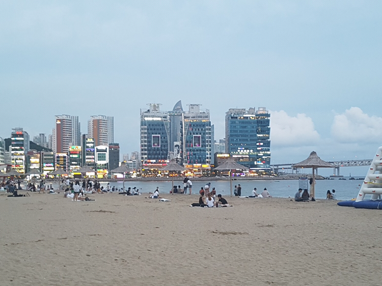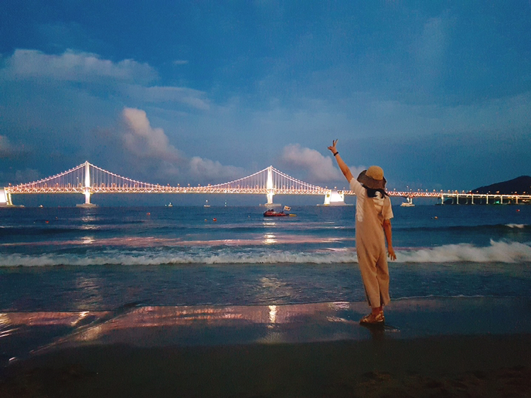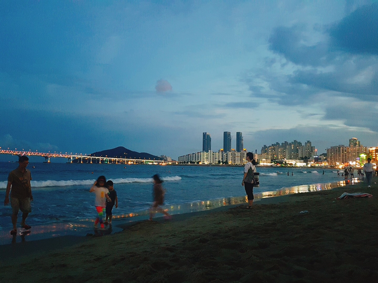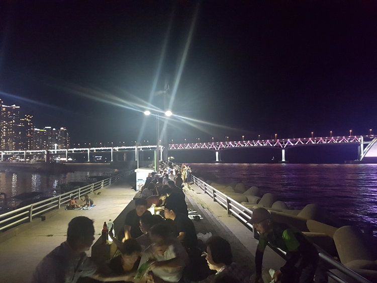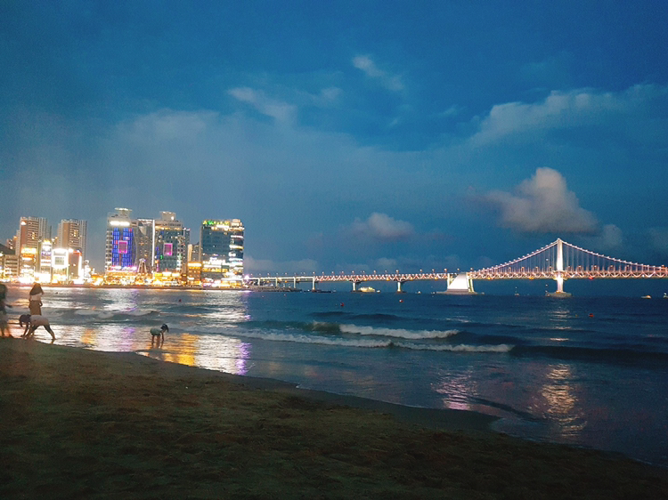 부산에 오기 전 윤건의 '가을에 만나' 노래를 들으며 파도 치는 바다에서 맥주 한잔 마시면 낭만적일거라 생각했다. 부푼 마음을 안고 해가 지는 광안 해수욕장을 바라보았다.