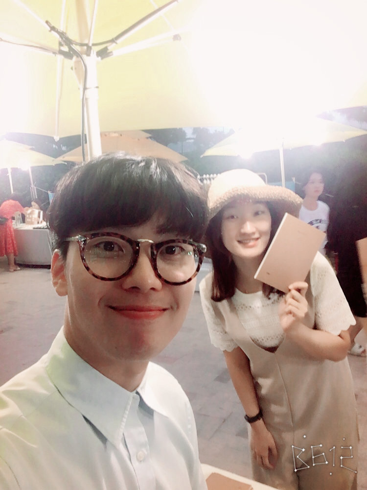 친구 옆에서 시인의 설명을 들었는데 내용이 흥미로웠다. 자신의 시집을 어떤 마음으로 썼는지, 또 독자가 어떻게 체험하면 좋을지 고민한 흔적이 느껴졌기 때문이다. 그리고 맨 뒤에 무슨 내용을 쓰셨는지 궁금하기도 하고, 늦은 밤 시를 읽으면 어떤 기분일까 경험해보고 싶었다. 시집을 산 독자와 찍은 사진을 모아 영상을 만들거라고 해서 사진도 함께 찍었다.