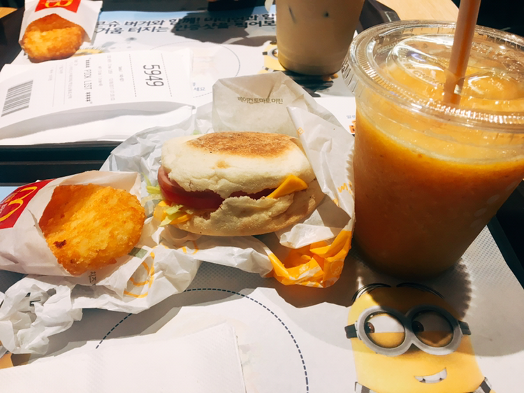 "아침 7시 20분에 서울역 맥도날드 앞에서 만나! 맥모닝 먹고 기차 타자."
