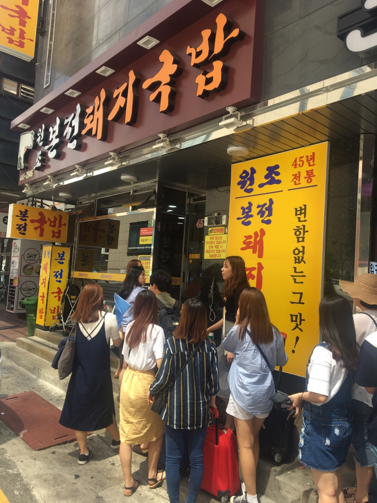 돼지국밥 사랑은 여름에도 지치지 않는 것 같다. 부산역 앞 오랜 전통을 자랑하는 돼지국밥 집은 점심 시간이 다가오기 전부터 사람들이 줄지어 서있었다. 캐리어를 든 사람들이 많은 걸 보니 부산에 도착한 외지인들이 많이 찾는 식당인 것 같았다.