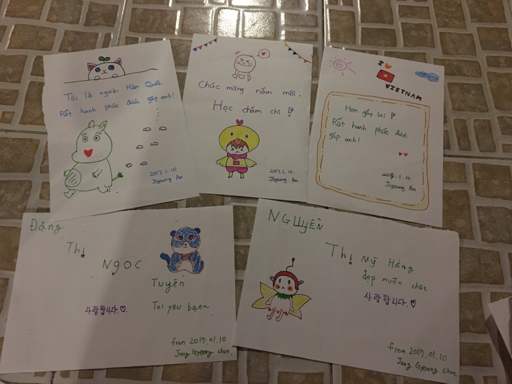 오늘 제 주머니에는 특별한 선물이 들어있어요~~ 바로바로 손편지!! 베트남에서 인기스타로 통하는 경춘이에게 아이들이 꽃과 편지, 그리고 혼자 먹기도 부족한 간식을 양손 가득 준비해서 선물해줬어요~ 저라면 혼자 숨어서 몰래 먹었을텐데 아이들 마음이 참 예쁘고, 고맙죠?^^